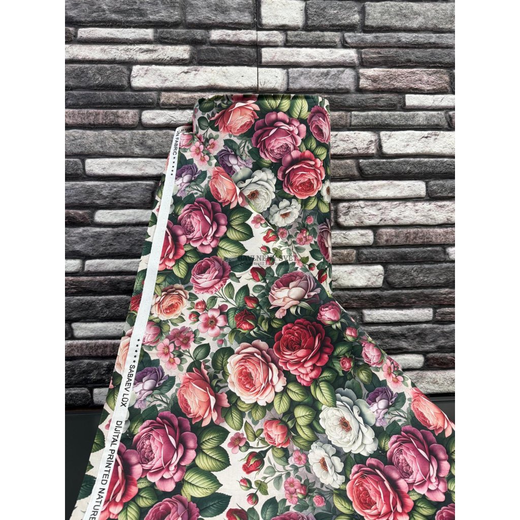 Oživte svůj interiér prémiovým bavlněným plátnem, které díky technologii digitálního tisku přináší neuvěřitelně detailní a barevně sytý květinový motiv. Tato látka je vyrobena z vysoce kvalitní 100% bavlny, která je ceněna pro svou prodyšnost, jemnost a příjemný pocit při kontaktu s pokožkou. Použitý digitální tisk umožňuje vykreslit i ty nejjemnější detaily okvětních lístků a barevné přechody růžových, červených a bílých růží, což materiálu dodává luxusní a moderní vzhled. Díky své vysoké gramáži a pevné vazbě je plátno velmi odolné a zachovává si svou strukturu i po mnoha vypráních.