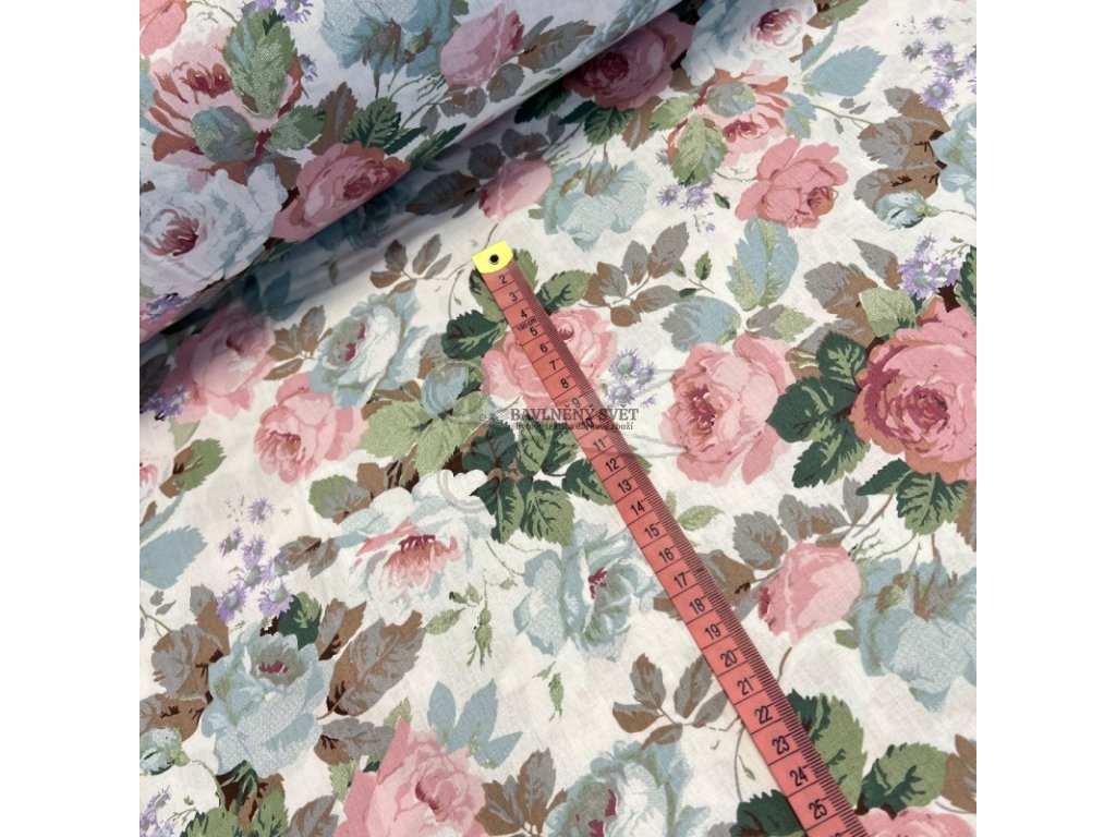 Toto 100% bavlněné plátno v šířce 240 cm vás okouzlí svou romantickou barvou. Bohatý vzor růží působí velmi elegantně, což umožňuje látku využít v klasických i moderně laděných interiérech. Pokud se věnujete patchworku, toto plátno je perfektní pro kombinování s dalšími vzory nebo jednobarevnými látkami, se kterými vytvoří harmonický celek. Látka je pevná, hustě tkaná a velmi příjemná na omak.