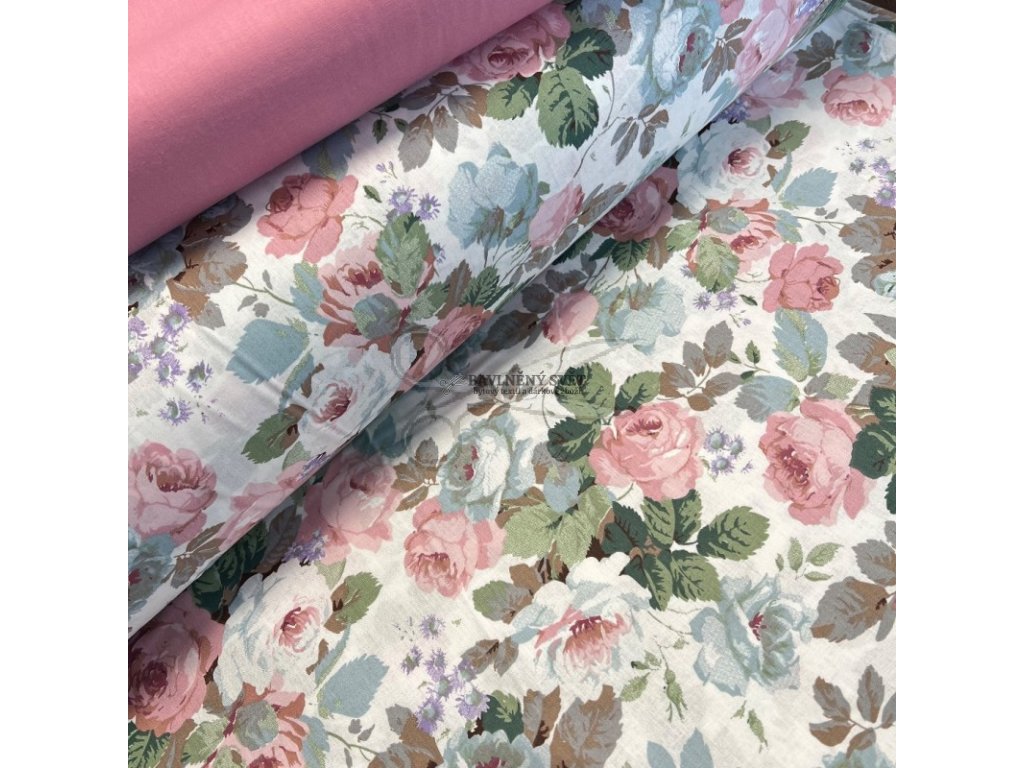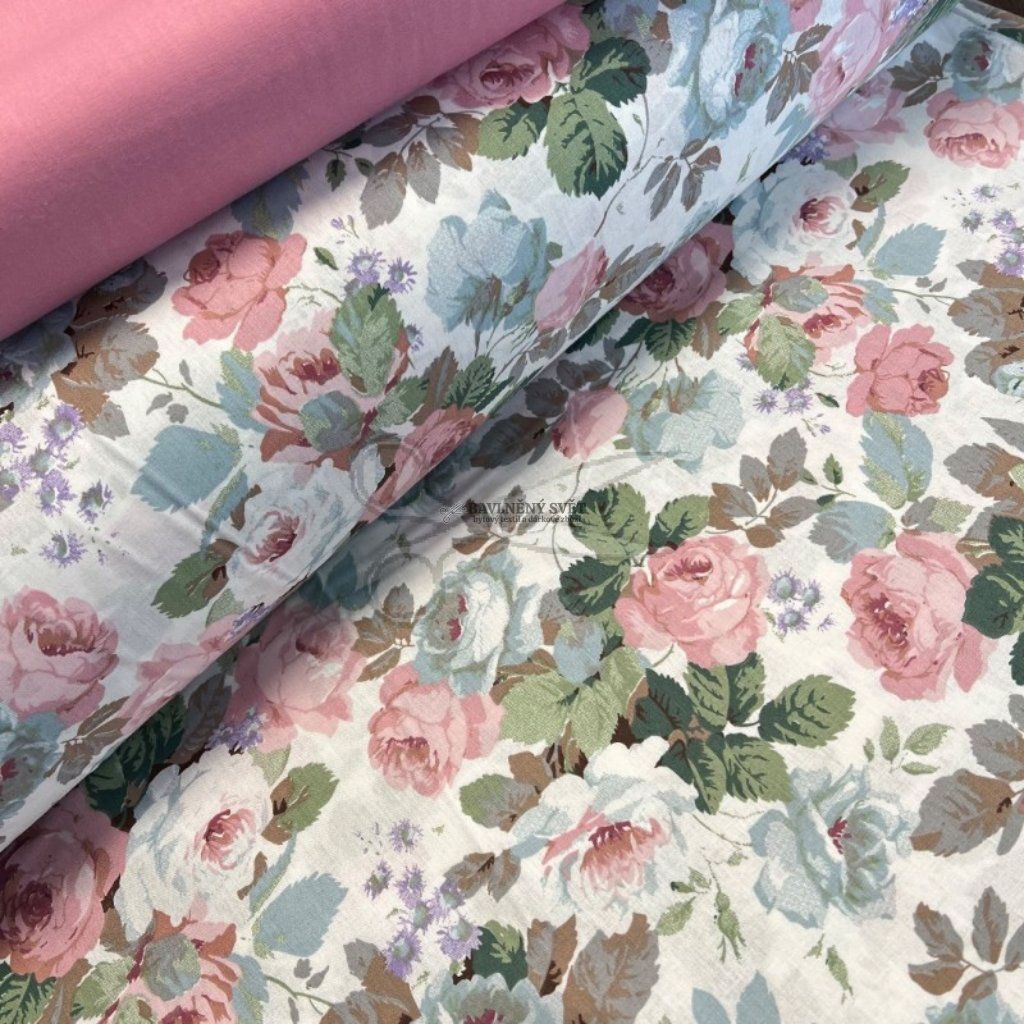 Bavlněná látka RŮŽE Klára STARORŮŽOVÁ šíře 240 cm