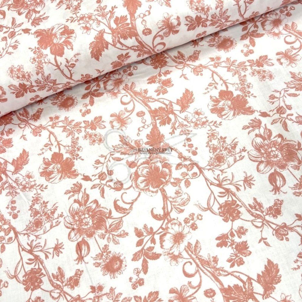 Kvalitní jemné 100% bavlně plátno s jemným květinovým motivem šípkových růží v elegantním starorůžovém odstínu v šíři 140 cm. Ideální metráž pro šití romantického povlečení a bytových doplňků. Tato vysoce kvalitní metráž s gramáží 140g/m2 kombinuje pevnost s prodyšností, díky čemuž je ideální volbou pro stylové oděvy a bytové doplňky.