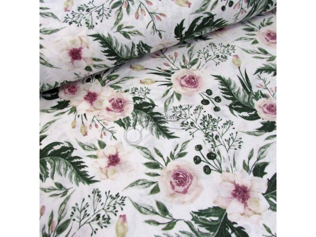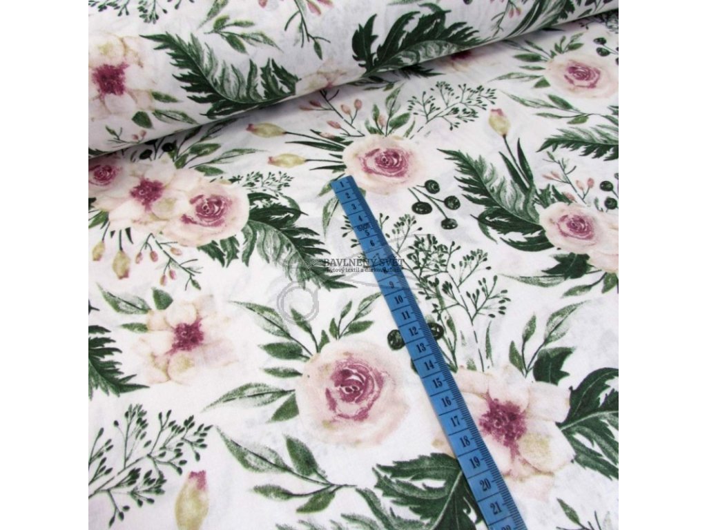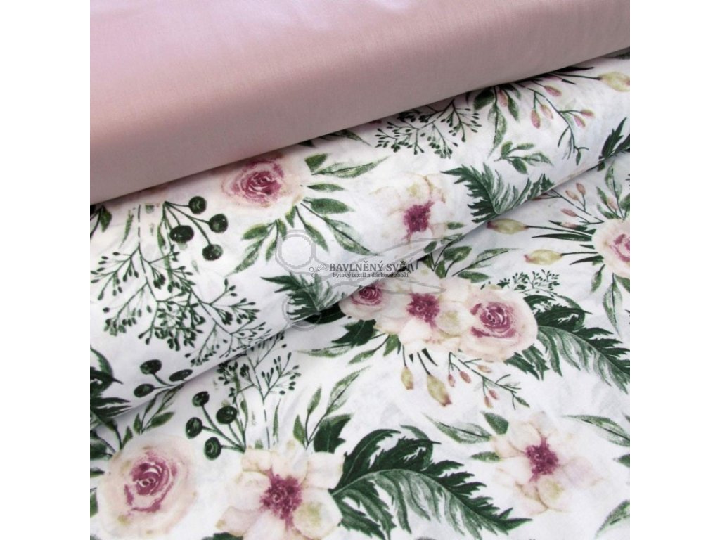 Bavlněná látka RŮŽE starorůžová šíře 160 cm