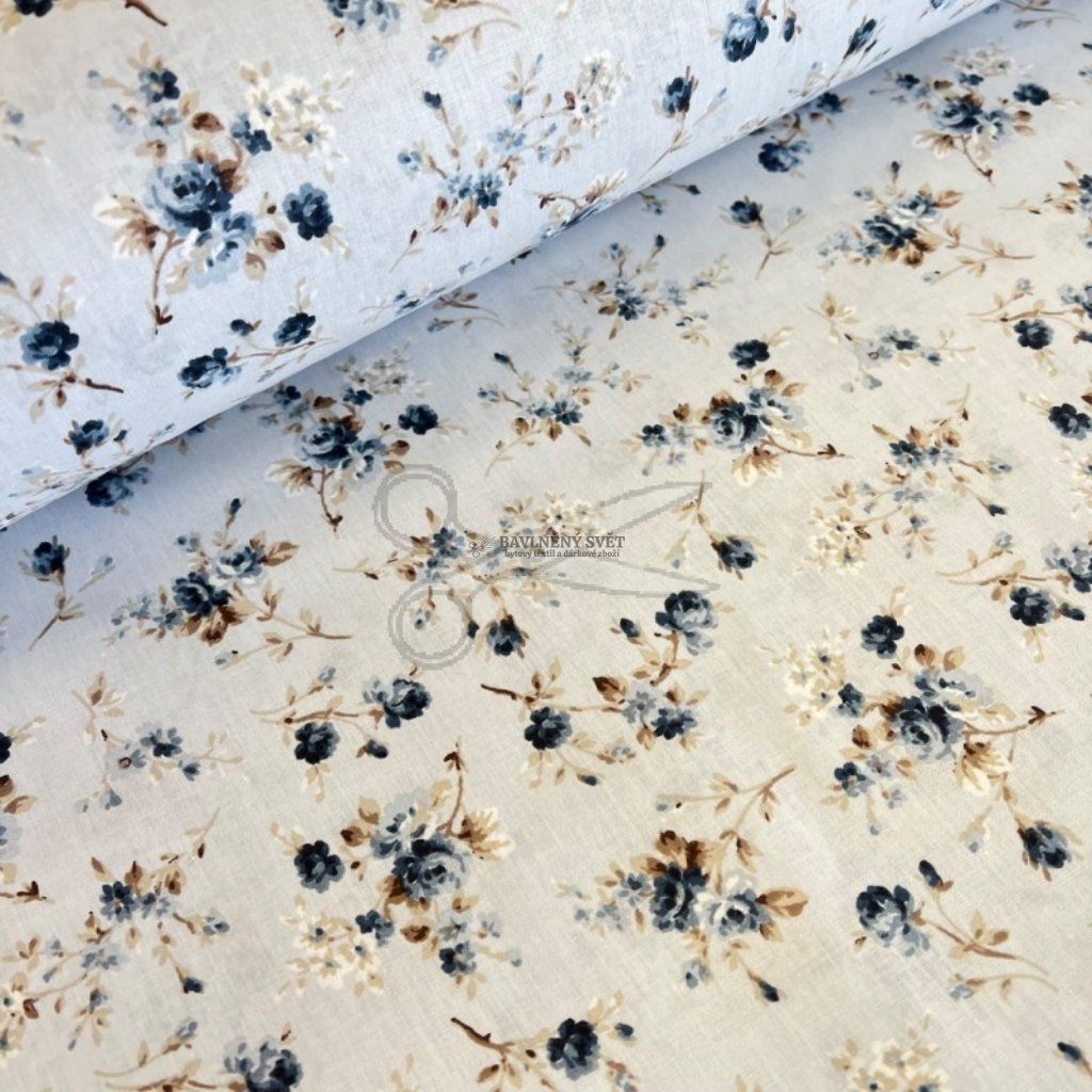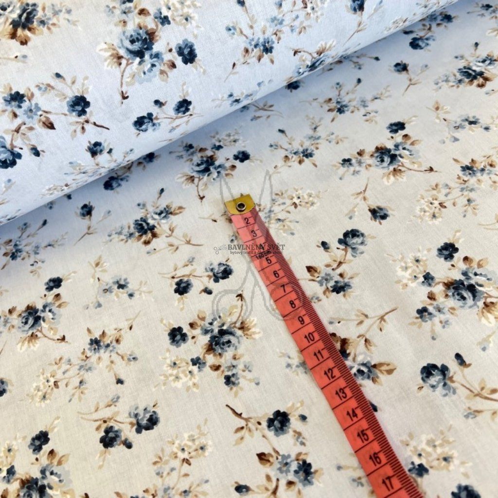 Bavlněná látka RŮŽIČKY modré šíře 240 cm