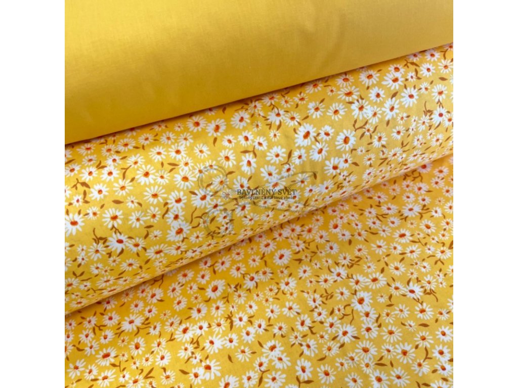 Bavlněná látka SEDMIKRÁSKA žlutá šíře 240 cm