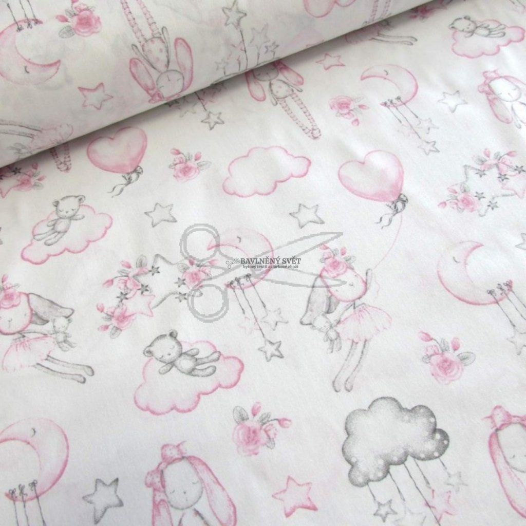 Bavlněná látka SLADKÉ SNY růžové šíře 160 cm