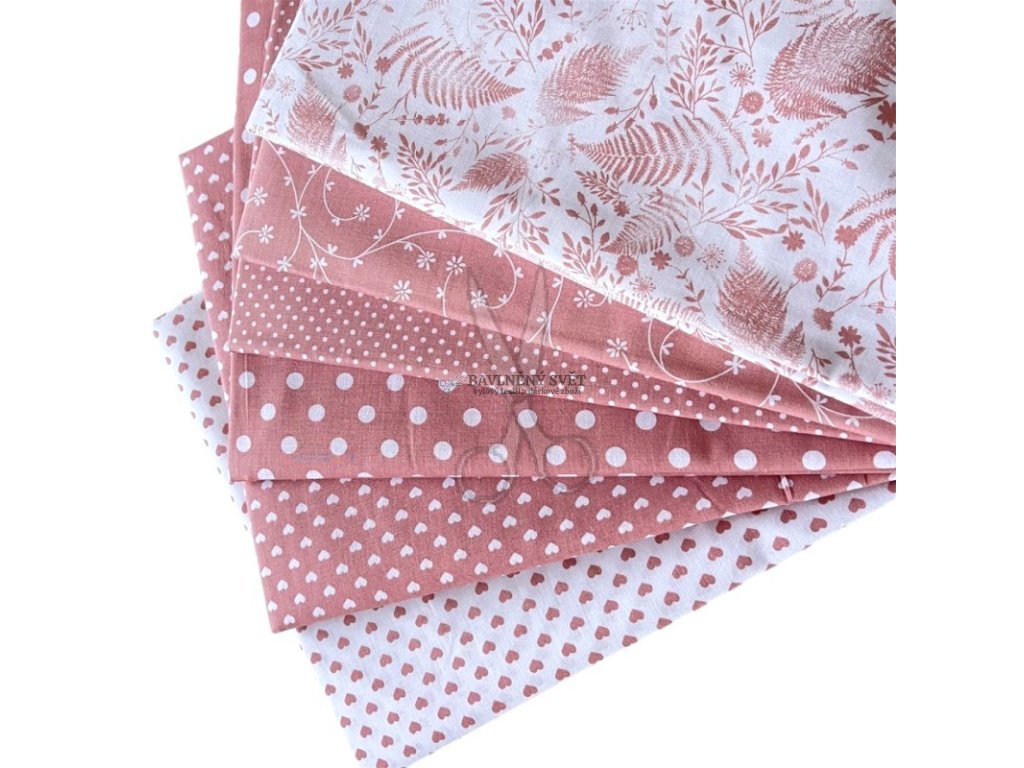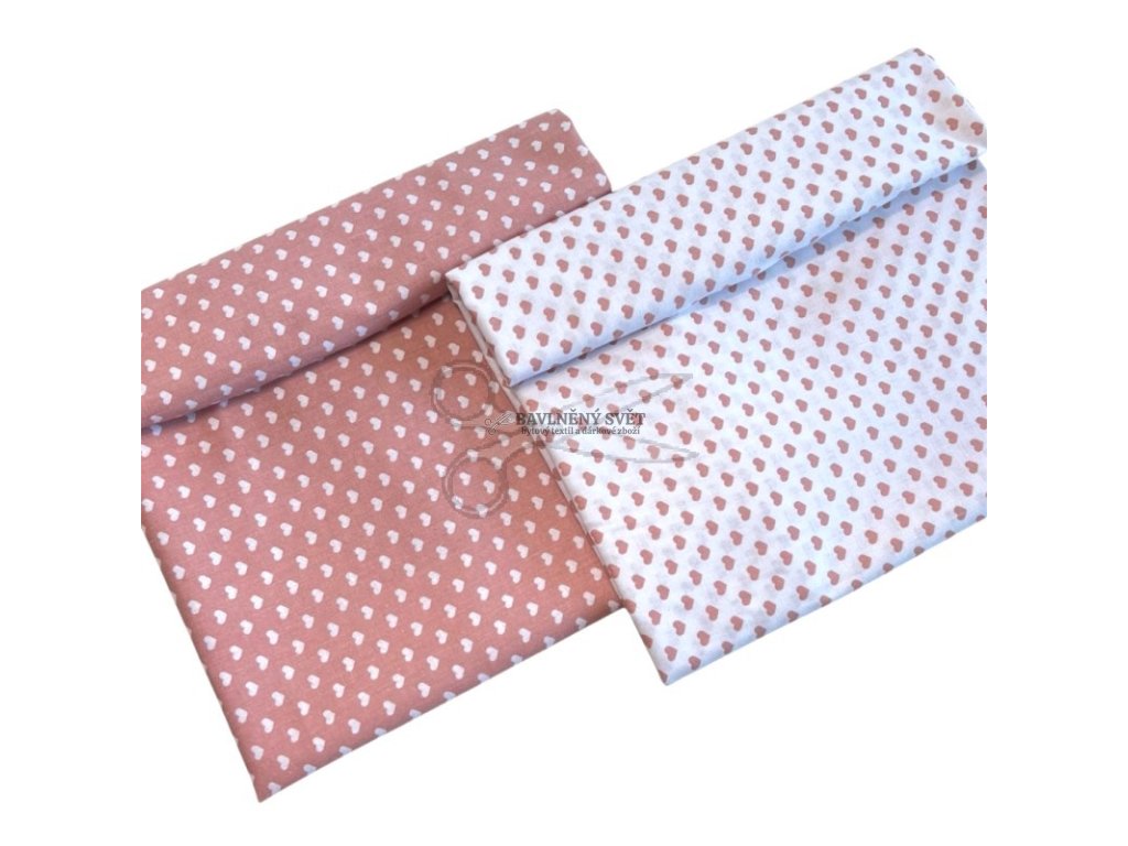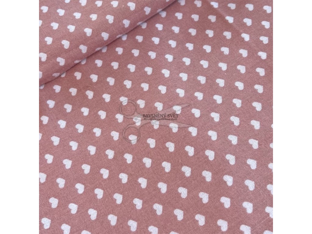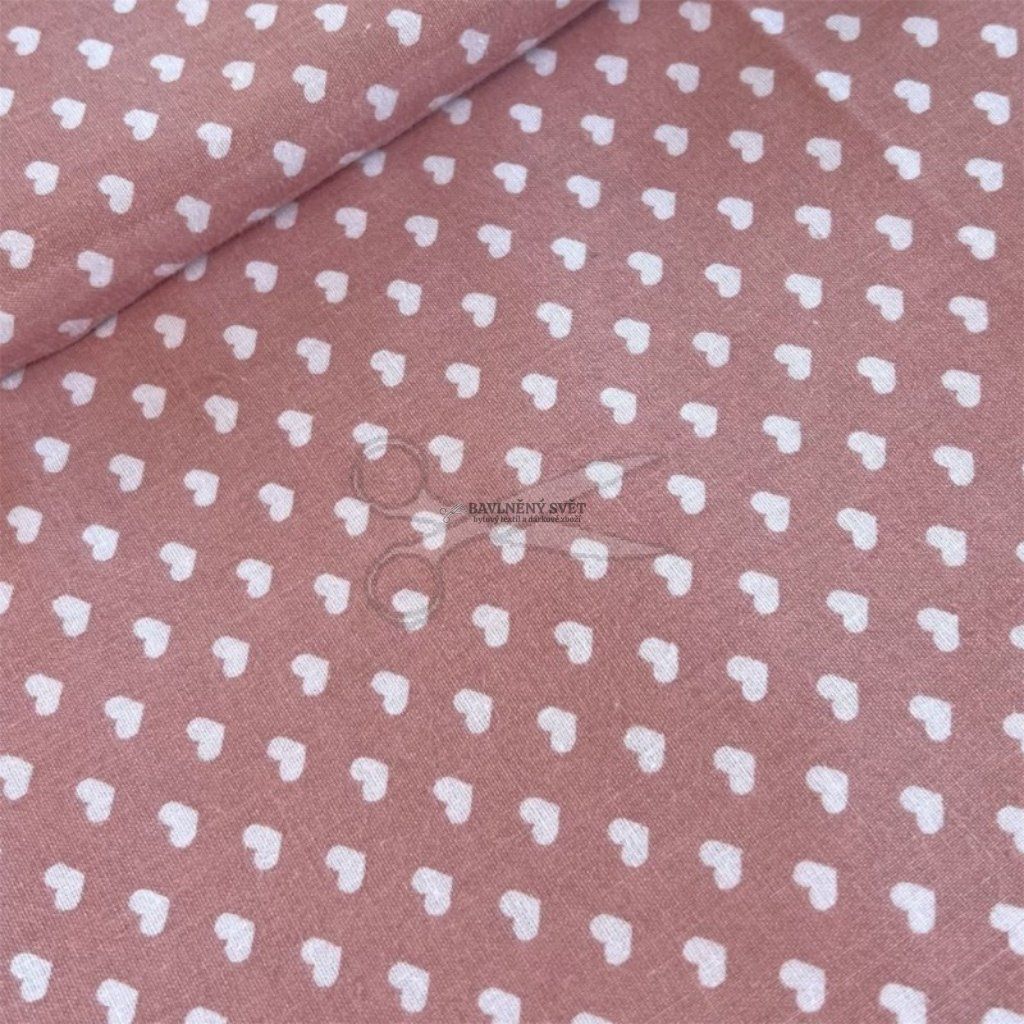 Bavlněná látka SRDÍČKA bílá na STARORŮŽOVÉM šíře 140 cm