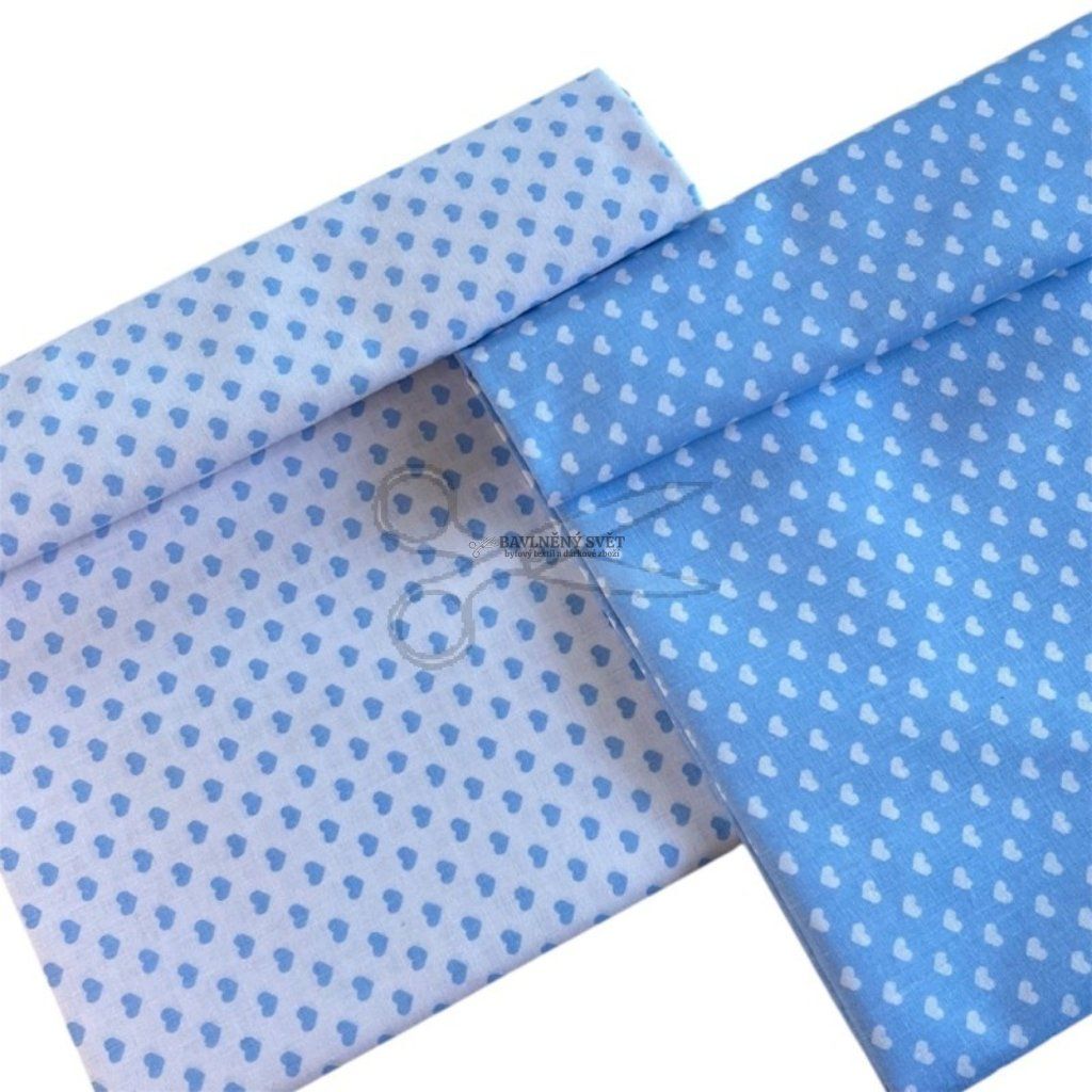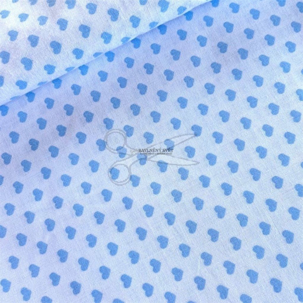 Bavlněná látka SRDÍČKA světle modrá na BÍLÉM šíře 140 cm