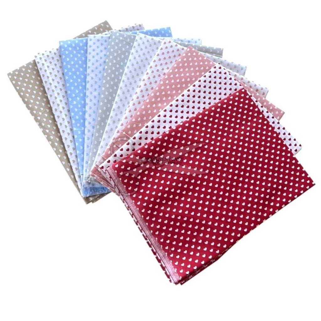 Nechte se inspirovat jemností tohoto bavlněného plátna, které je jako stvořené pro projekty plné lásky a něhy. Drobný vzor modrých srdíček dodá vašim výrobkům lehkost a hravost, ať už se pustíte do šití výbavičky pro miminka nebo patchworkového tvoření.
