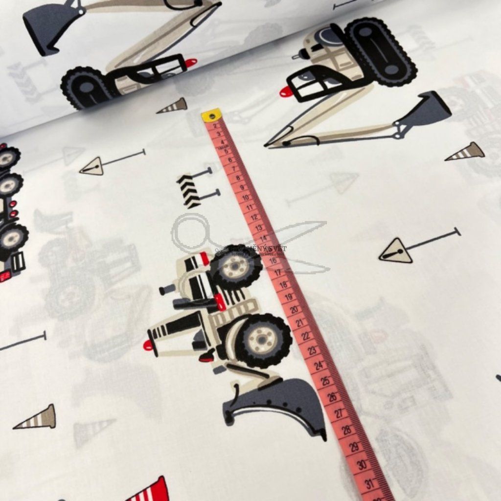 Bavlněná látka STAVEBNÍ STROJE šedé šíře 240 cm