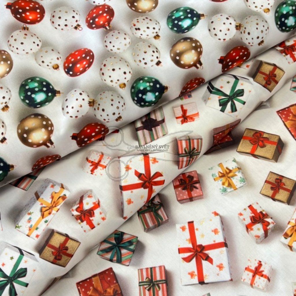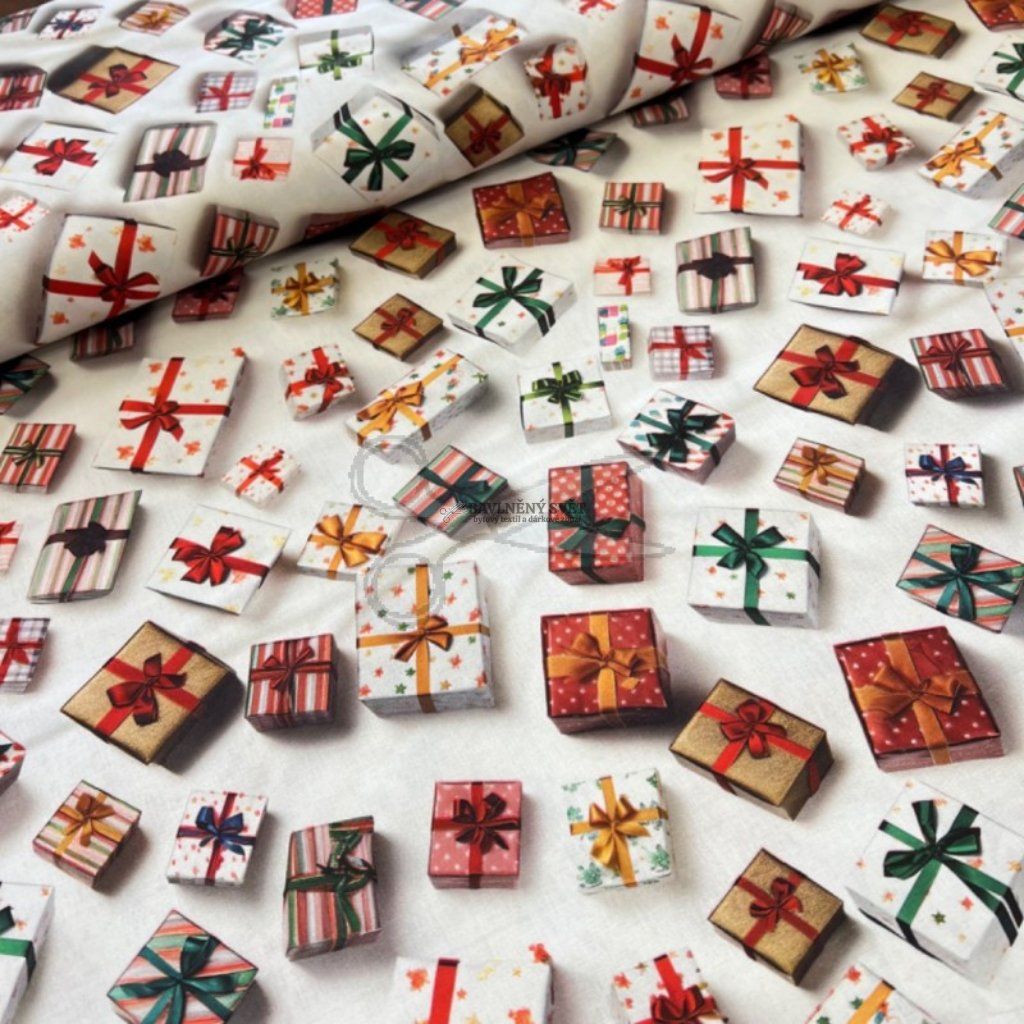 Bavlněná látka VÁNOČNÍ DÁREČKY šíře 150 cm