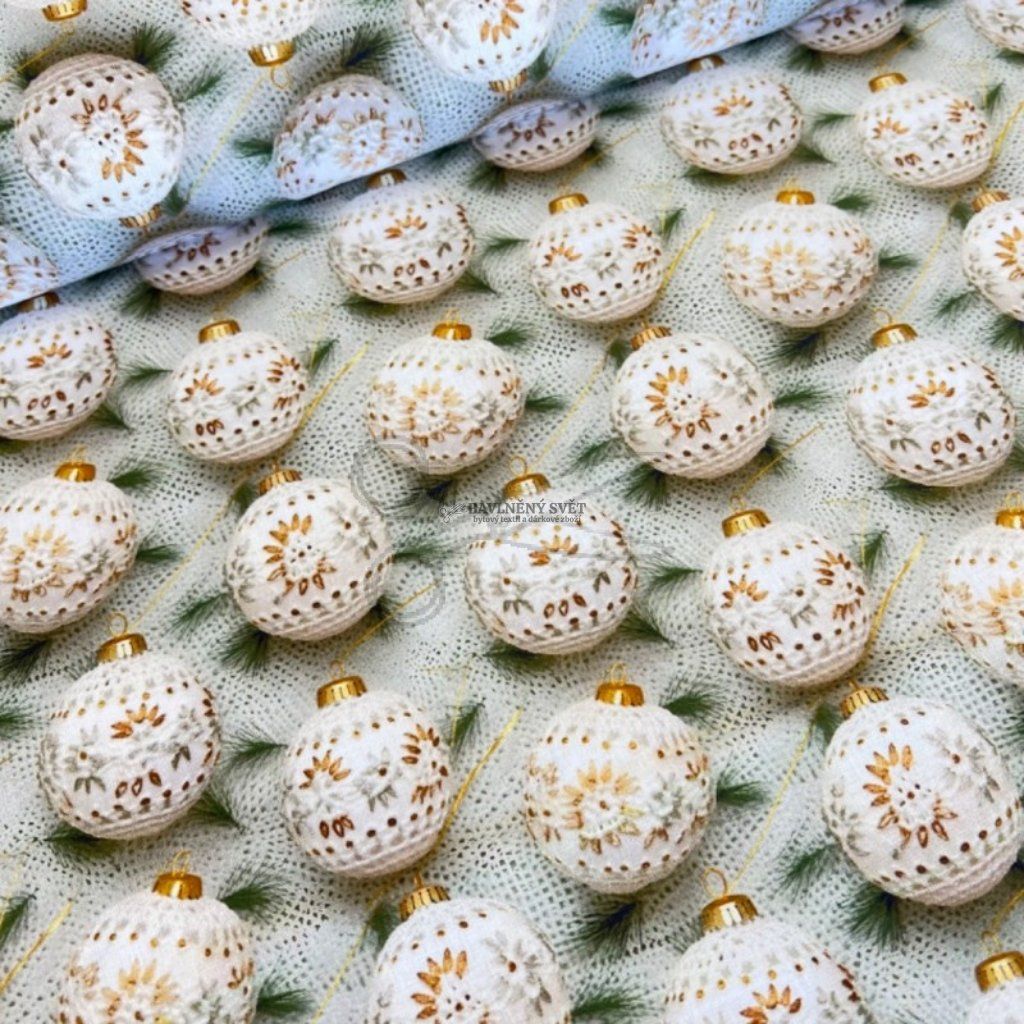 Bavlněná látka VÁNOČNÍ KOULE zlaté šíře 150 cm