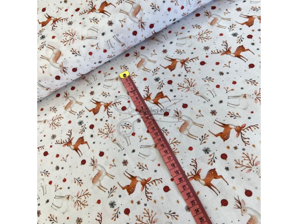Vdechněte svému domovu kouzlo severské zimy s tímto milým vzorem, který okamžitě vykouzlí úsměv na tváři. Látka s motivem sobů a vánočních ozdob přímo vybízí k výrobě doplňků, které budou provázet vaše děti celým adventem. Ušijte svým blízkým originální vánoční dárky, jako jsou látkové batůžky, měkoučké polštářky pro zimní lenošení nebo veselé látkové obálky na dopisy pro Ježíška.