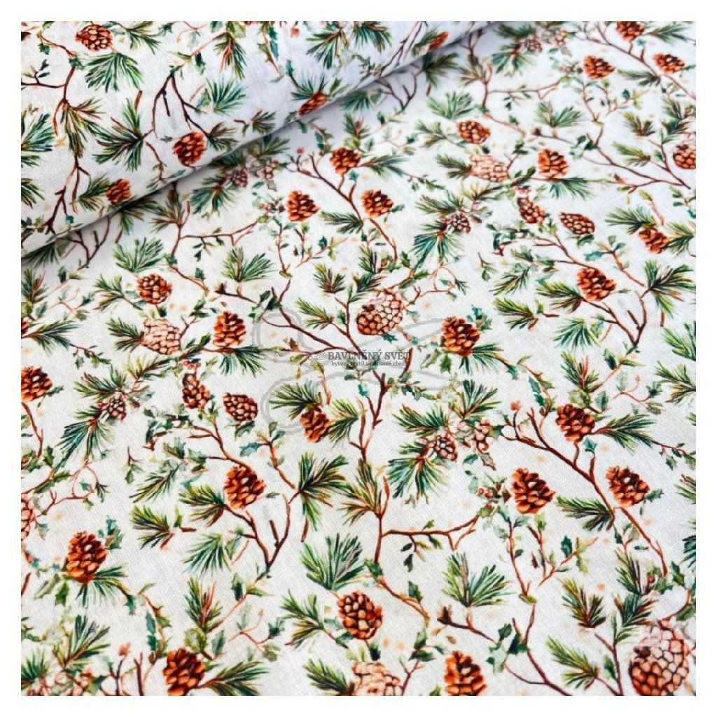 Bavlněná látka VÁNOČNÍ ŠIŠKY malé šíře 140 cm