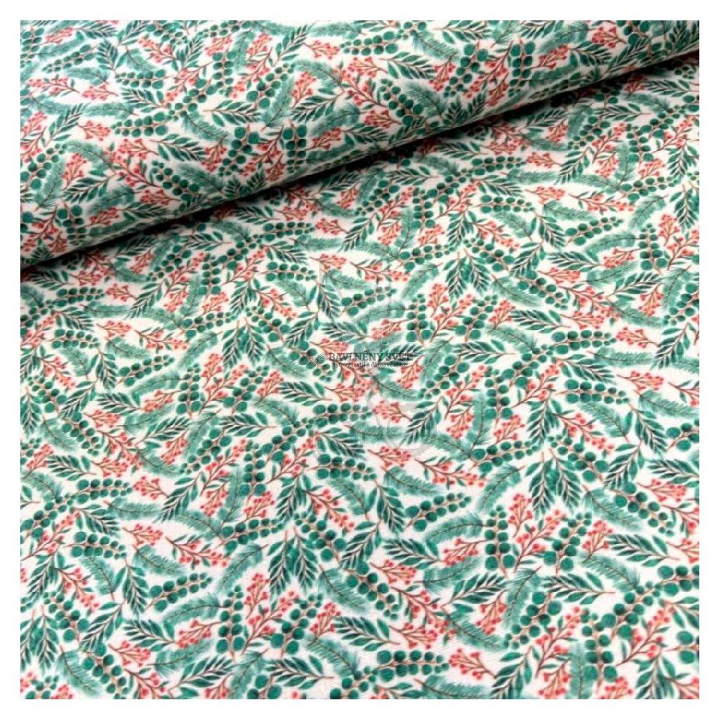 Pokud hledáte látku, která v sobě spojuje klasickou barevnost Vánoc s lehkostí přírodních motivů, tento vzor se zeleným jehličím a červenými plody vás jistě zaujme. Rozmístění větviček na podkladu v barvě přírodní bílé působí velmi vzdušně, což umožňuje látku využít i v moderních, minimalisticky laděných prostorech. Pevná vazba kvalitního bavlněného plátna je zárukou, že se materiál snadno udržuje a zachovává si svou barevnou stálost i po mnoha vypráních.
