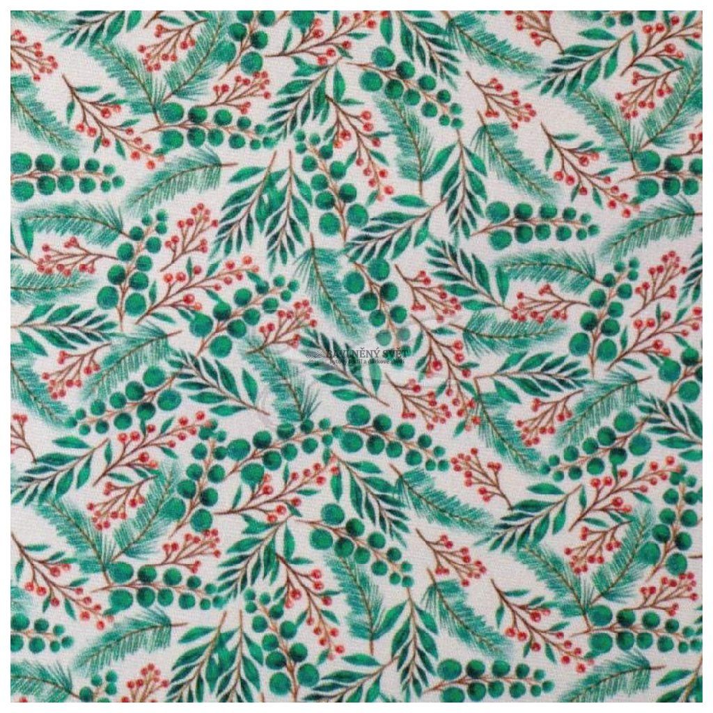 Bavlněná látka VÁNOČNÍ VĚTVIČKY šíře 147 cm