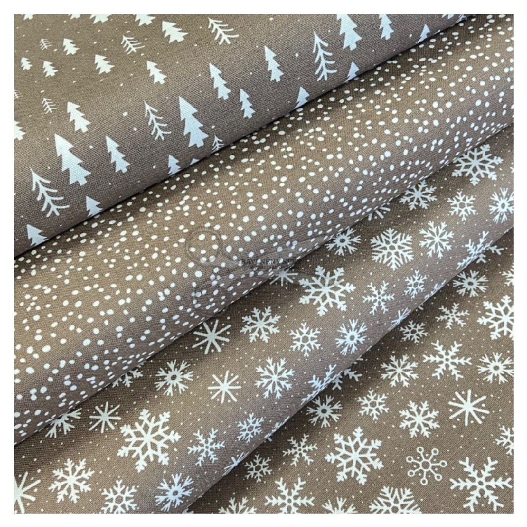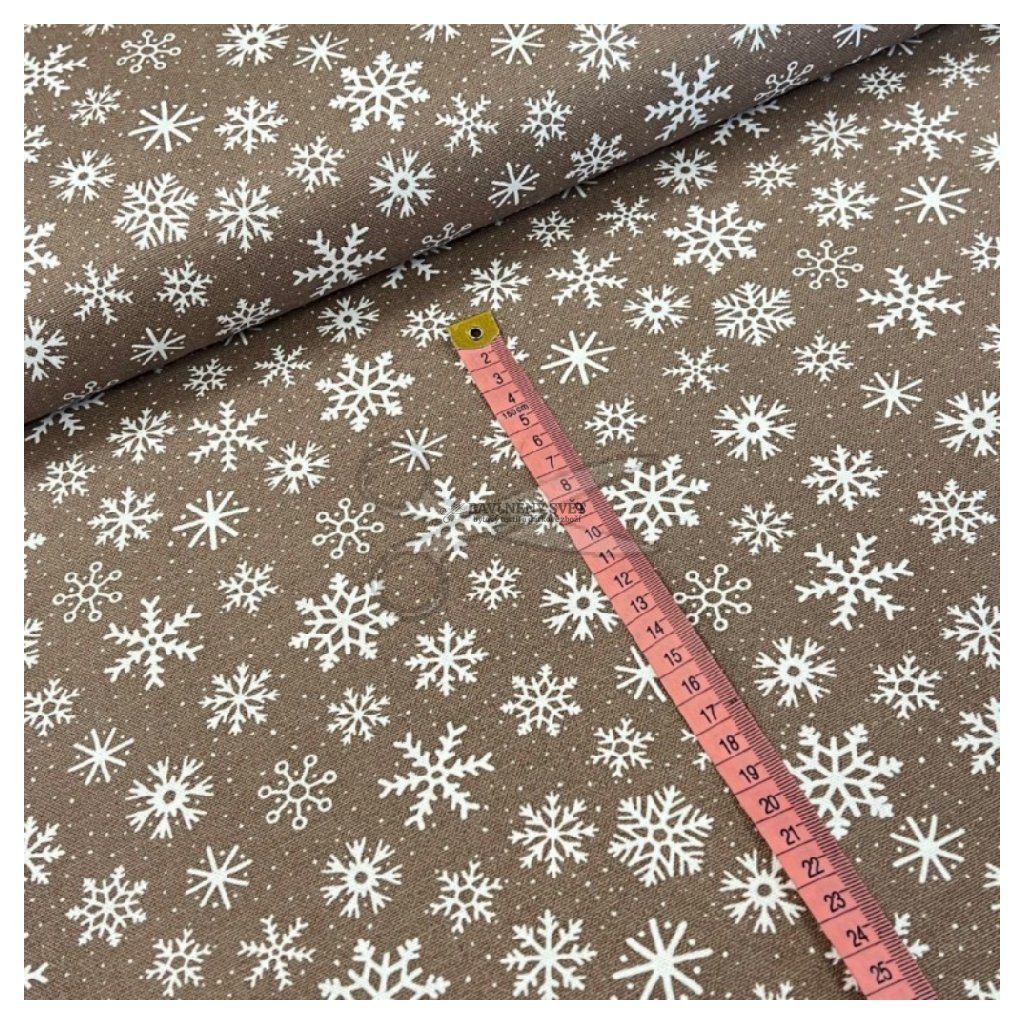 Bavlněná látka VÁNOČNÍ VLOČKY hnědé šíře 150 cm