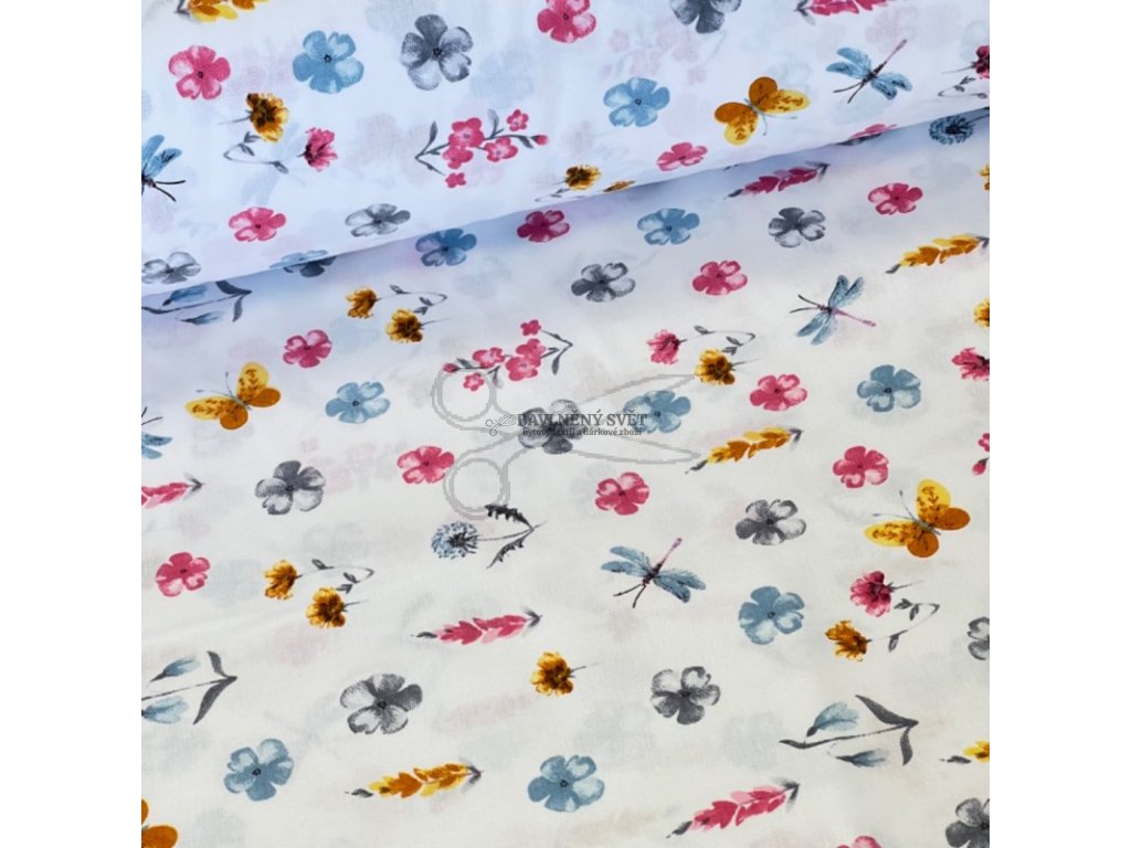 Bavlněná látka VÁŽKY motýl KYTIČKA šíře 240 cm