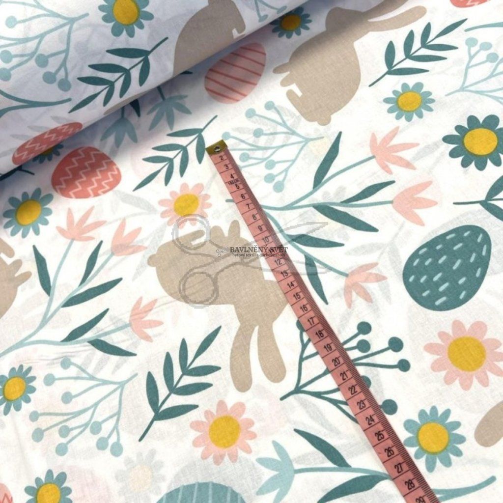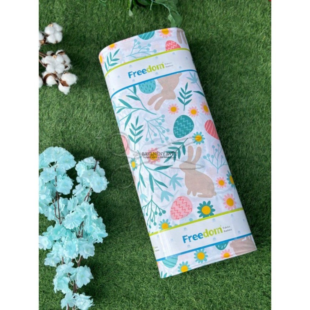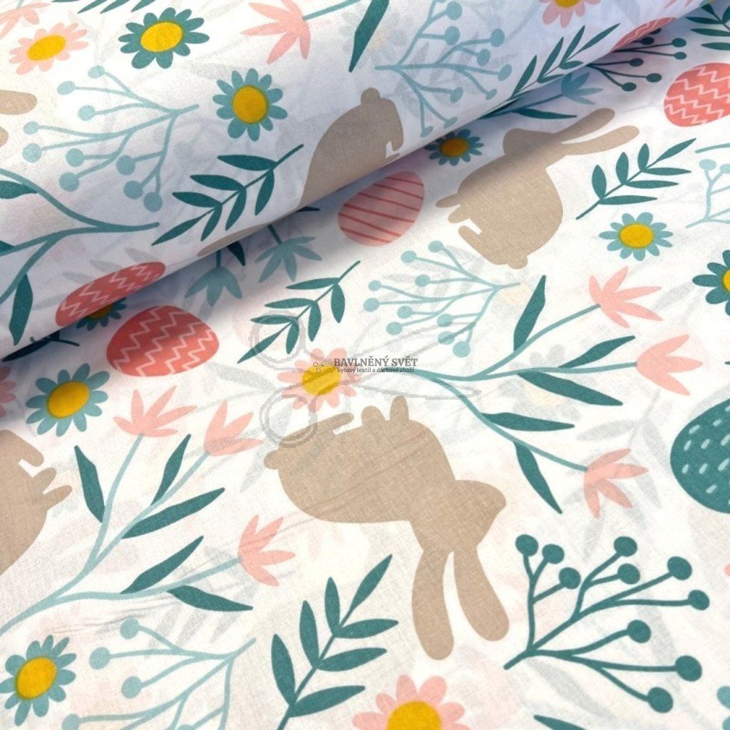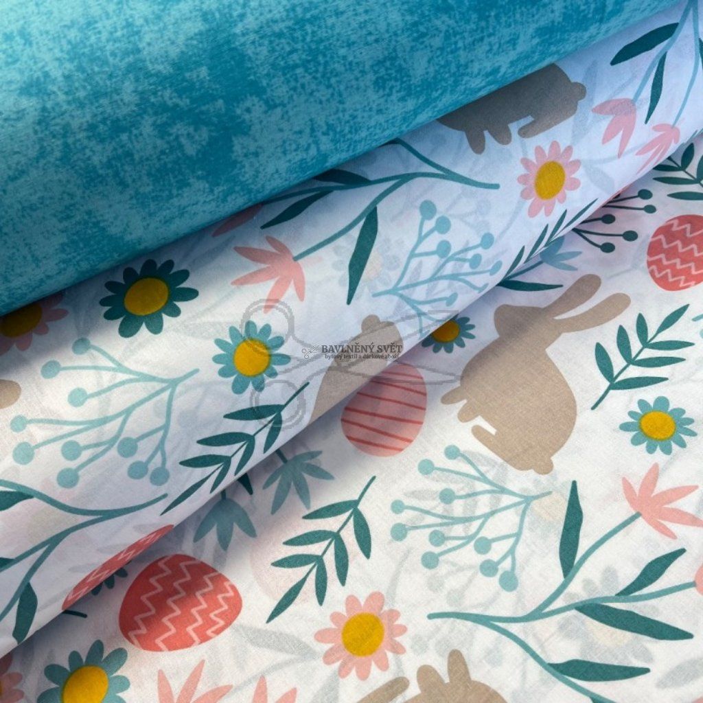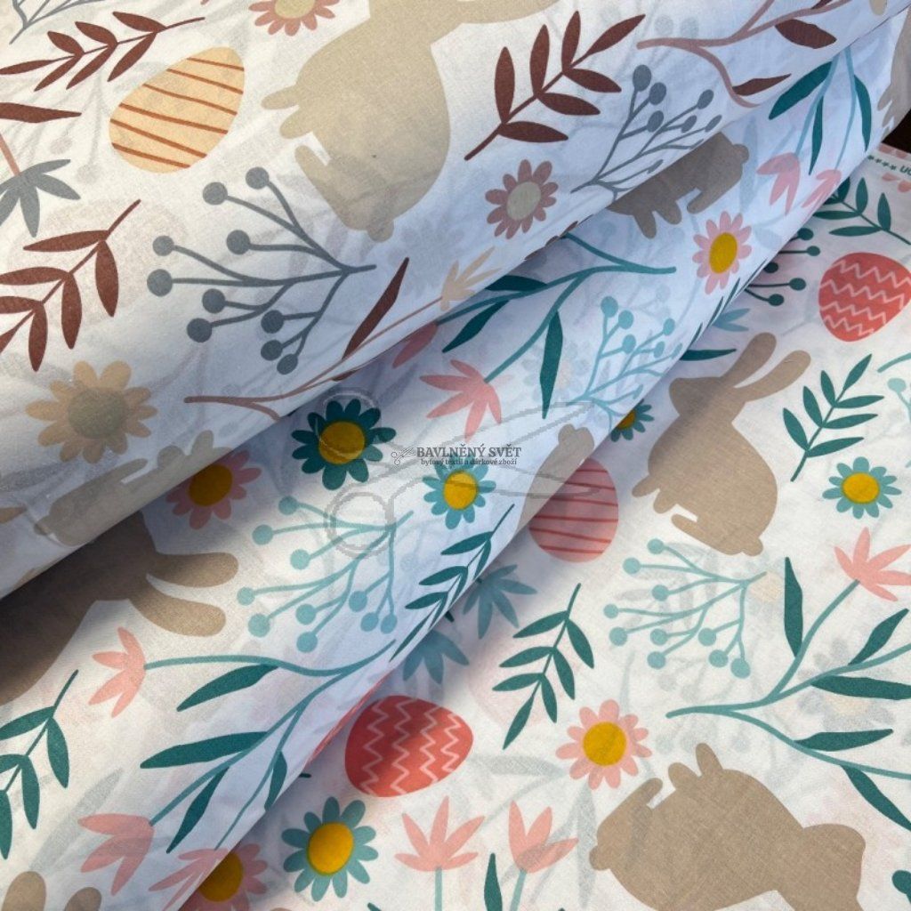 Tento vzor je jako stvořený pro velikonoční šití. Vaše děti si zamilují povlečení do postýlek, ve kterém se budou cítit jako na rozkvetlé louce. Pro malé i velké kuchařky z něj snadno ušijete jarní zástěry, které rozzáří každou kuchyni při pečení mazanců. Velmi praktické jsou také látkové pytlíčky pro koledníky na výslužku nebo látkové dekorační košíky na vajíčka, které vydrží roky. Díky šíři 240 cm můžete látku využít i na velké projekty bez zbytečných středových švů.