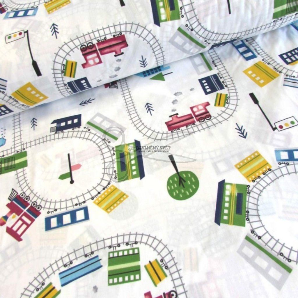 Bavlněná látka VLÁČEK na KOLEJÍCH šíře 240 cm