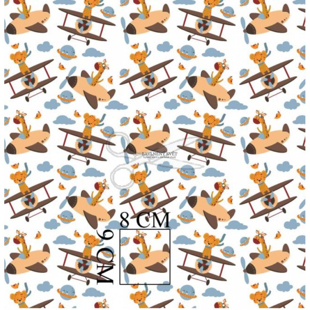 Bavlněná látka ŽIRAFA v LETADLE šíře 160 cm
