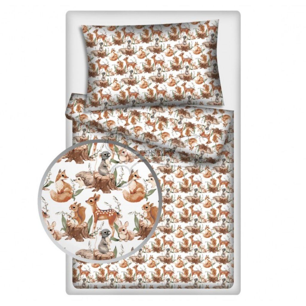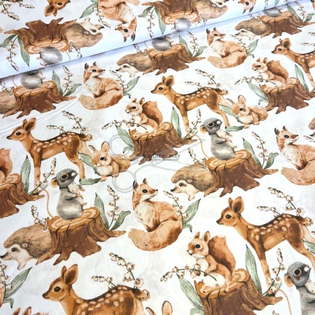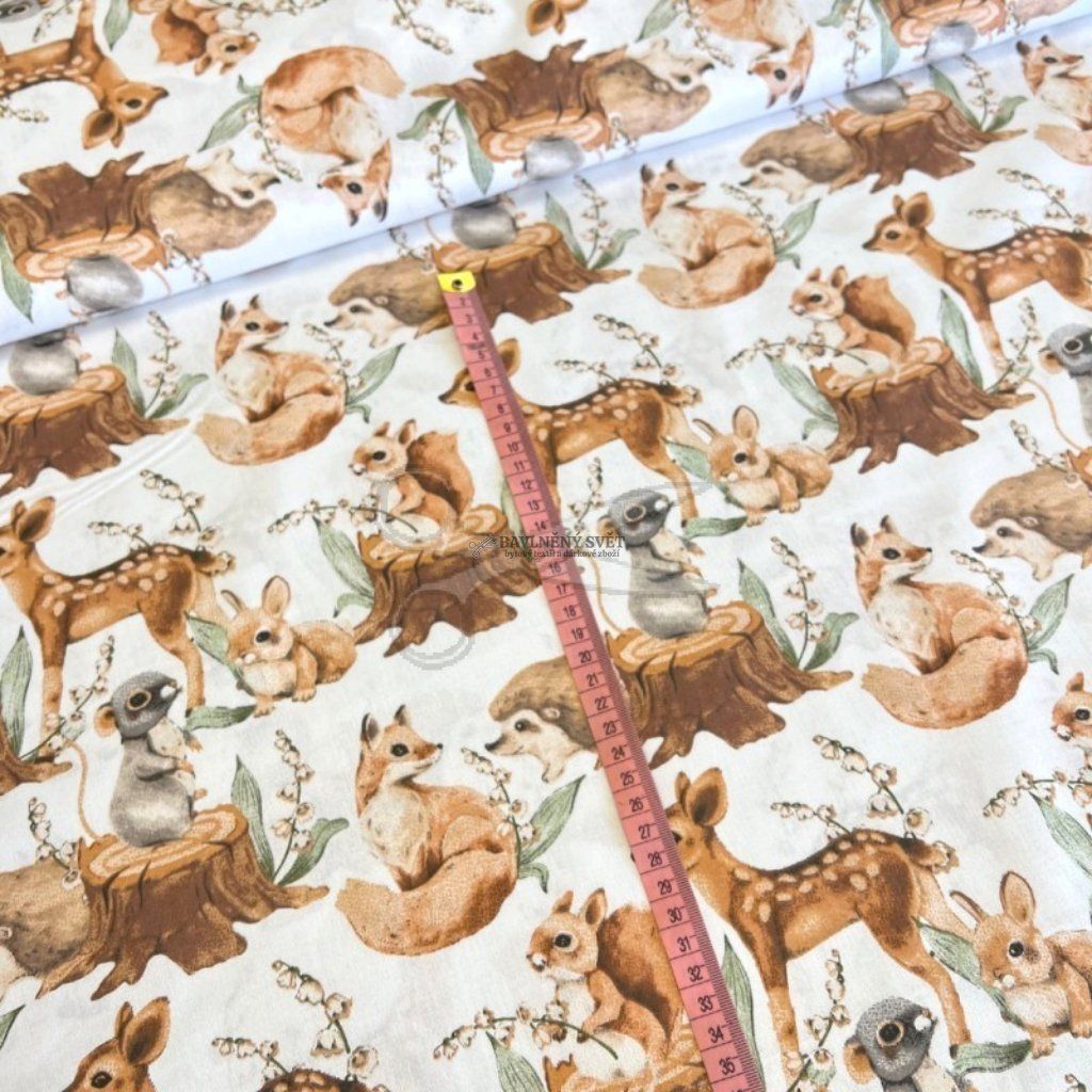 Pokud chcete pokojíček doladit k naprosté dokonalosti, doporučujeme tento vzor kombinovat s jednobarevným béžovým, hnědým nebo starorůžovým plátnem. Tato kombinace dodá vašim výrobkům luxusnější vzhled a podtrhne jemné barvy lesního motivu. Díky své poddajnosti je plátno vhodné i pro šití zástěrek do školky, pohodlných dětských oděvů nebo originálních obalů na knihy.