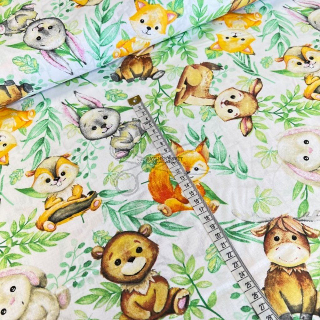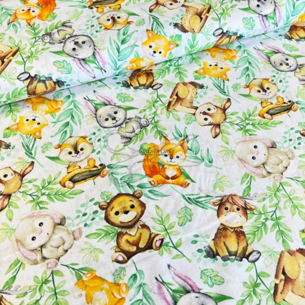 Bavlněná látka ZVÍŘÁTKA v LISTÍ šíře 160 cm