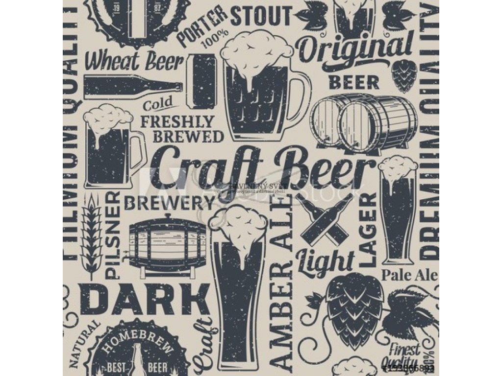 Bavlněná teplákovina CRAFT BEER šedý šíře 160 cm
