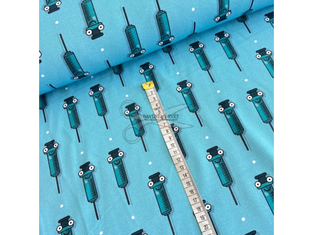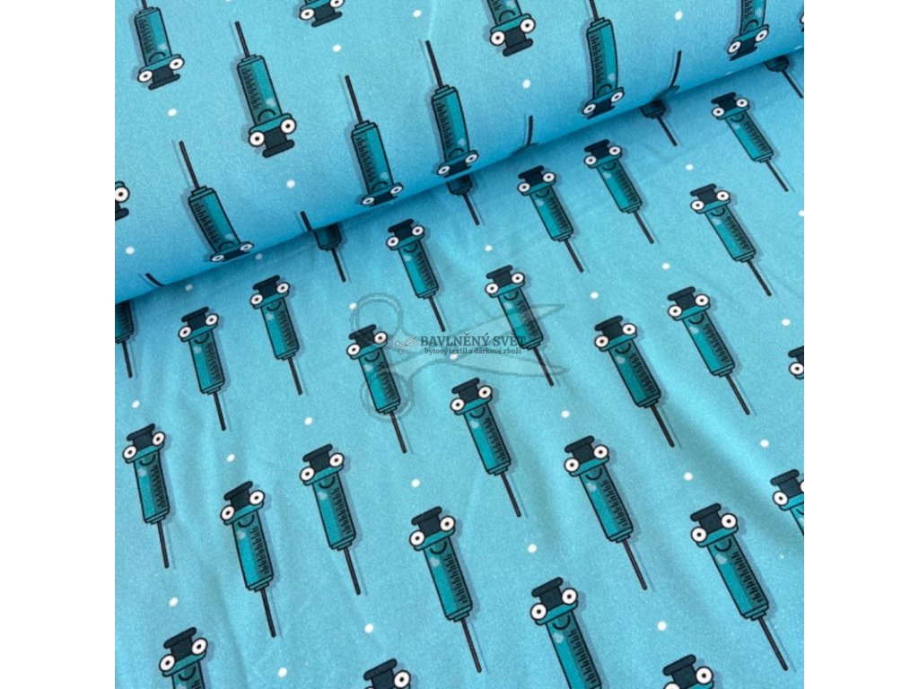 Oživte zdravotnický šatník trochou nadsázky! Design této teplákoviny tvoří usměvavé injekce na moderním tyrkysovém pozadí, což z ní dělá ideální volbu pro ty, kteří chtějí v práci působit přátelsky a uvolněně. Materiál je prodyšný, velmi příjemný na dotek a díky příměsi elastanu skvěle drží tvar, takže se nevytahuje ani při náročnějším pohybu.