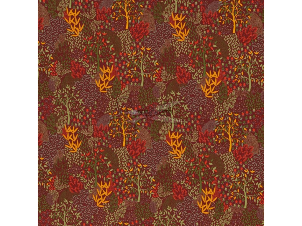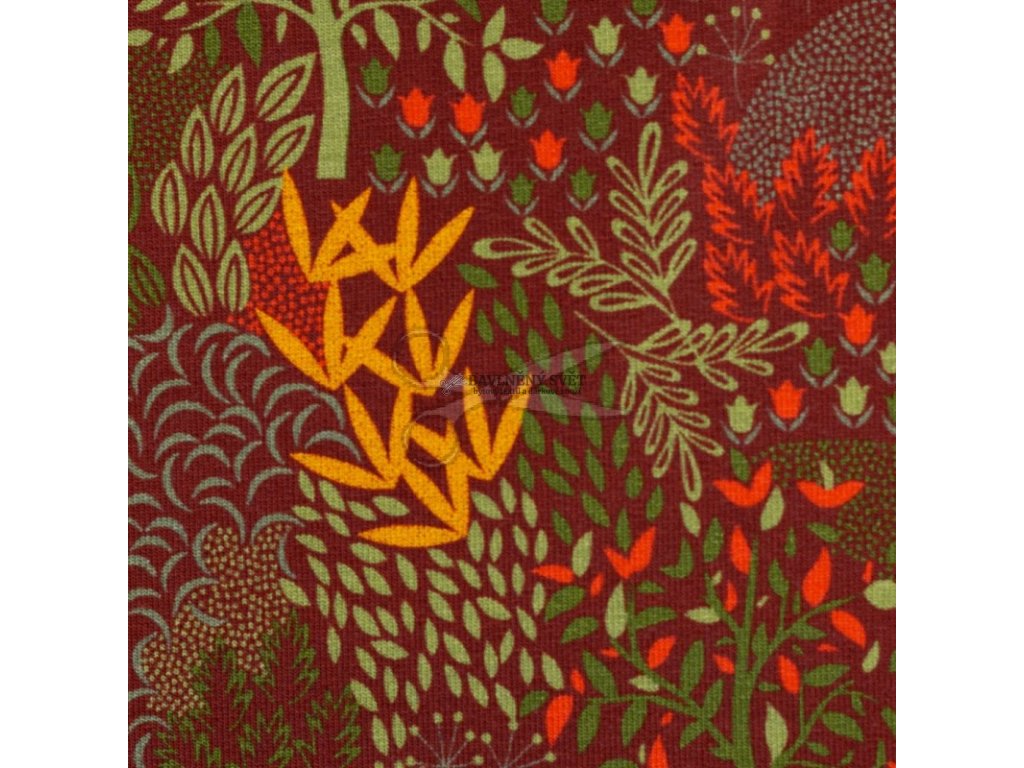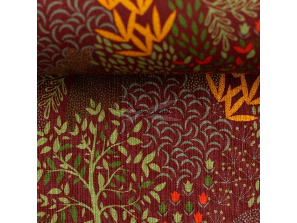 Bavlněná teplákovina LES bordó šíře 150 cm