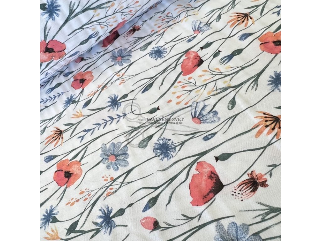 Bavlněný flanel MÁKY a CHRPA šíře 240 cm