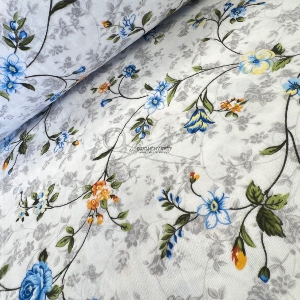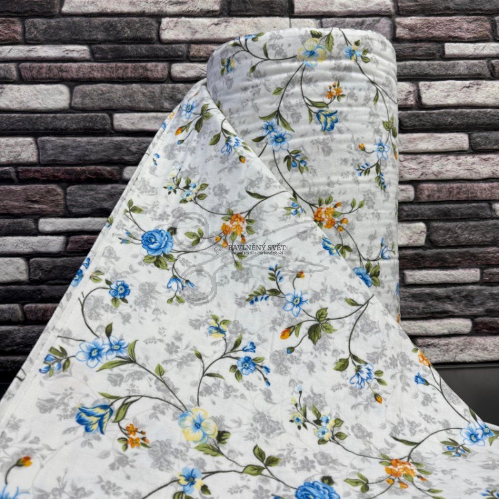 Bavlněný flanel RŮŽIČKY modré šíře 240 cm
