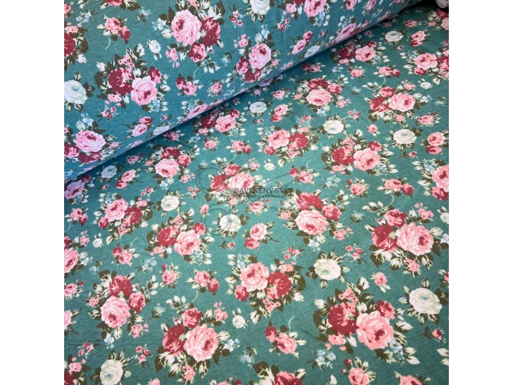 Bavlněný flanel RŮŽIČKY na MENTOLOVÉM šíře 240 cm