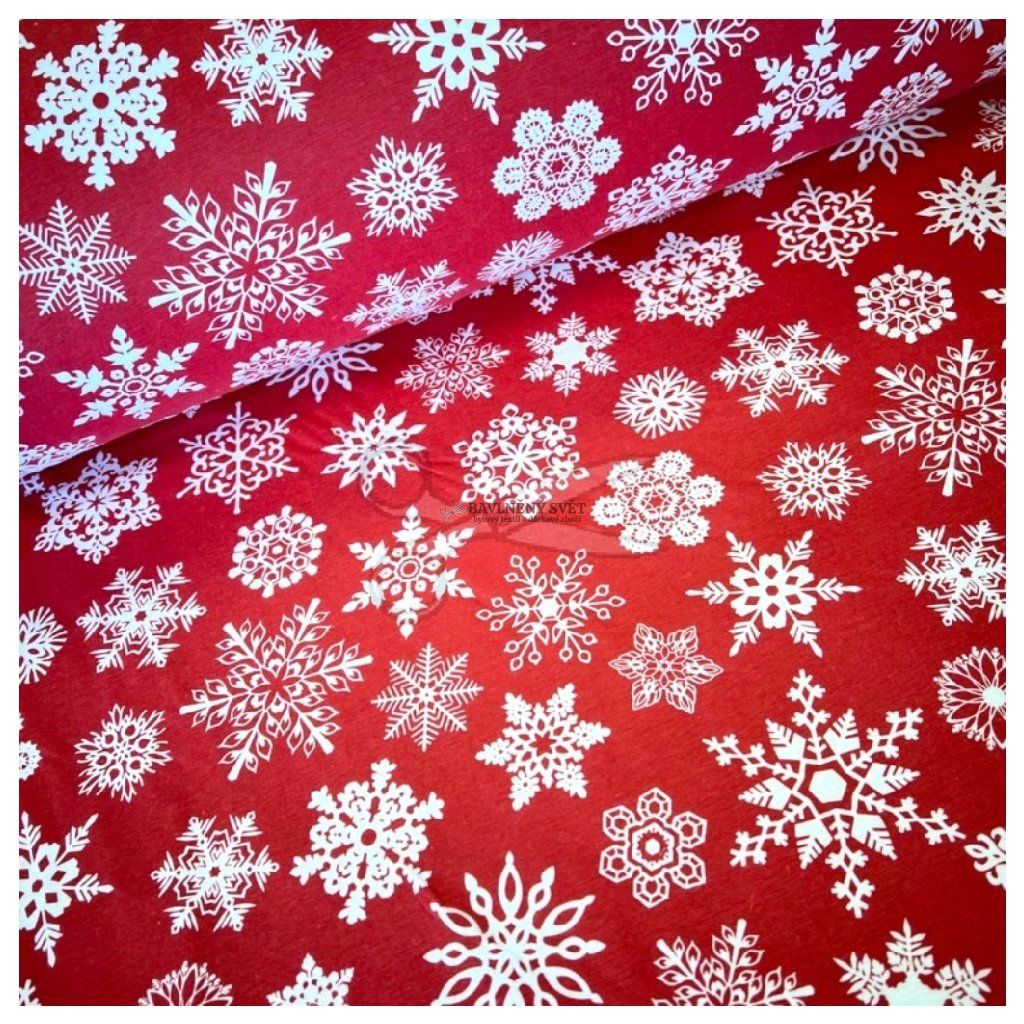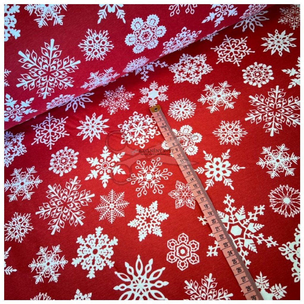 Bavlněný flanel SNĚHOVÉ VLOČKY na ČERVENÉM šíře 240 cm