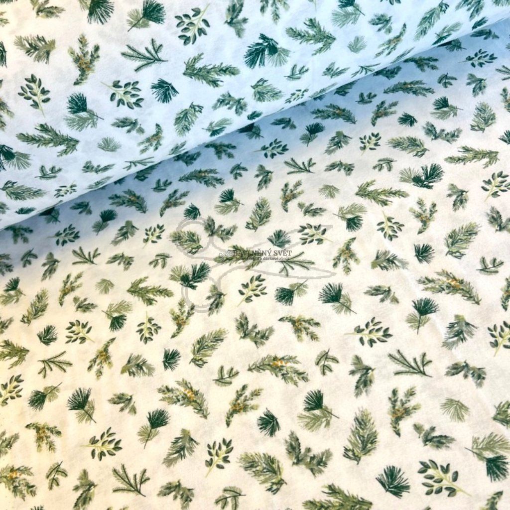 Bavlněný flanel VĚTVIČKY zelené šíře 240 cm