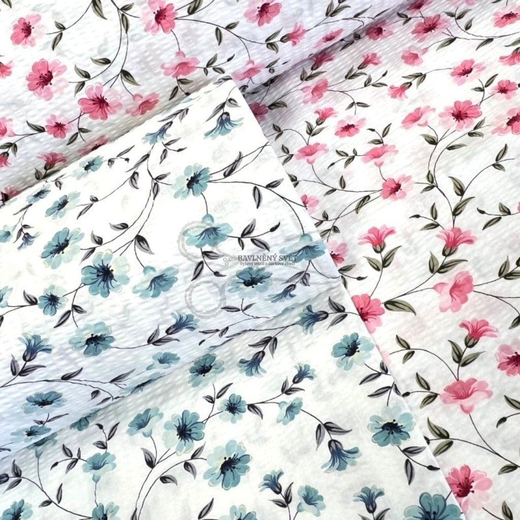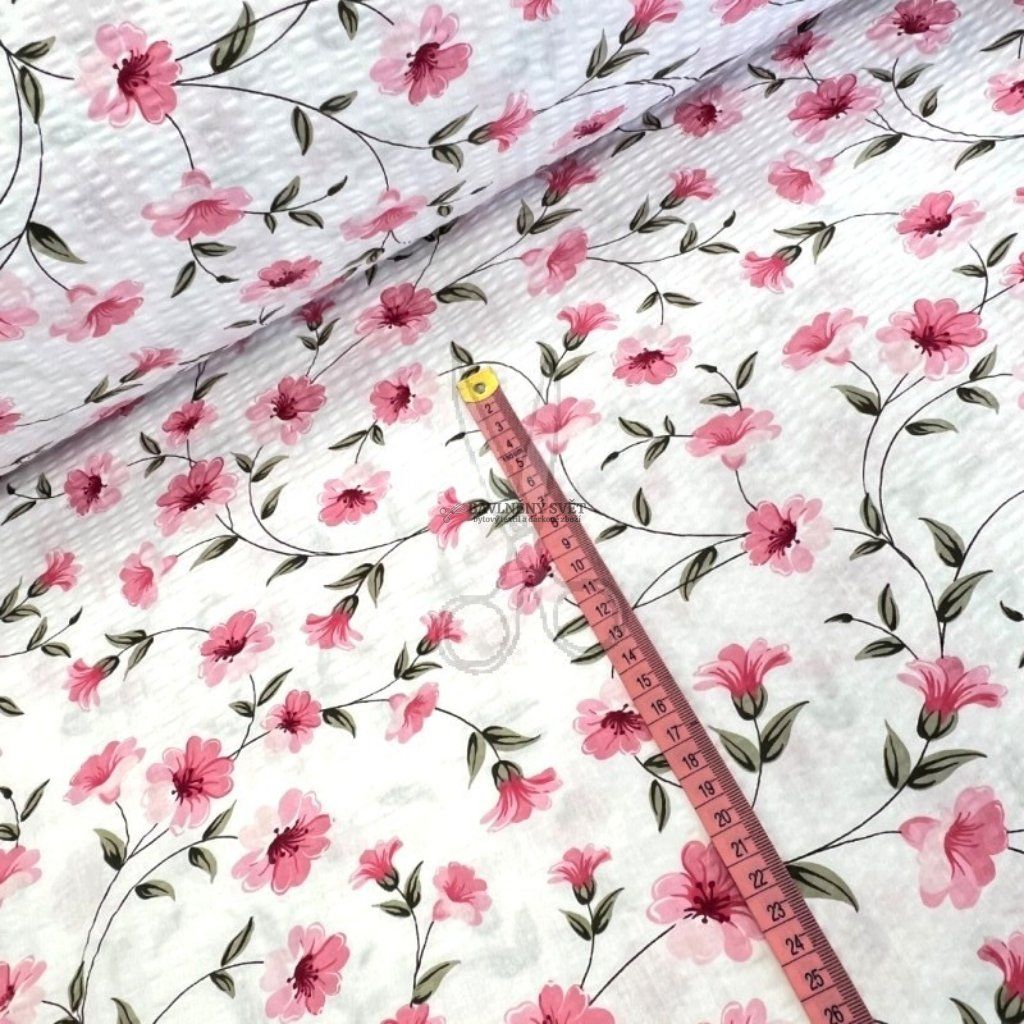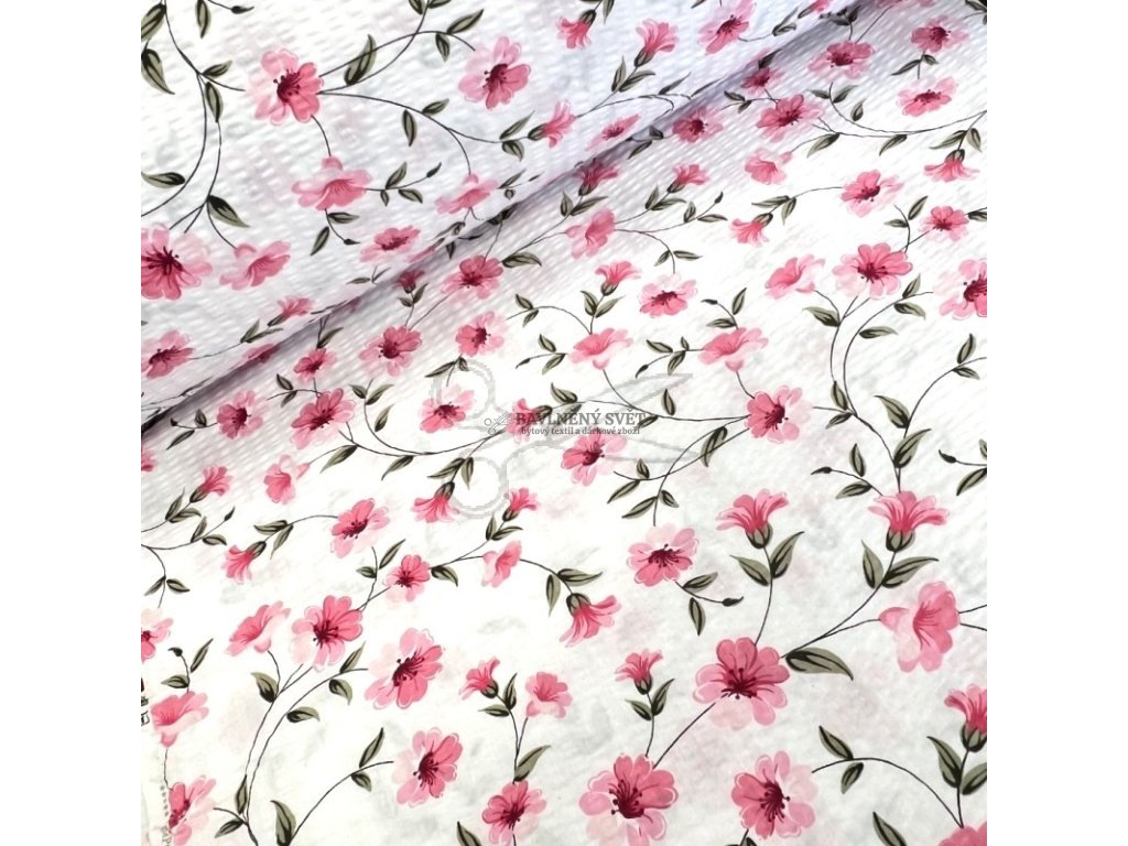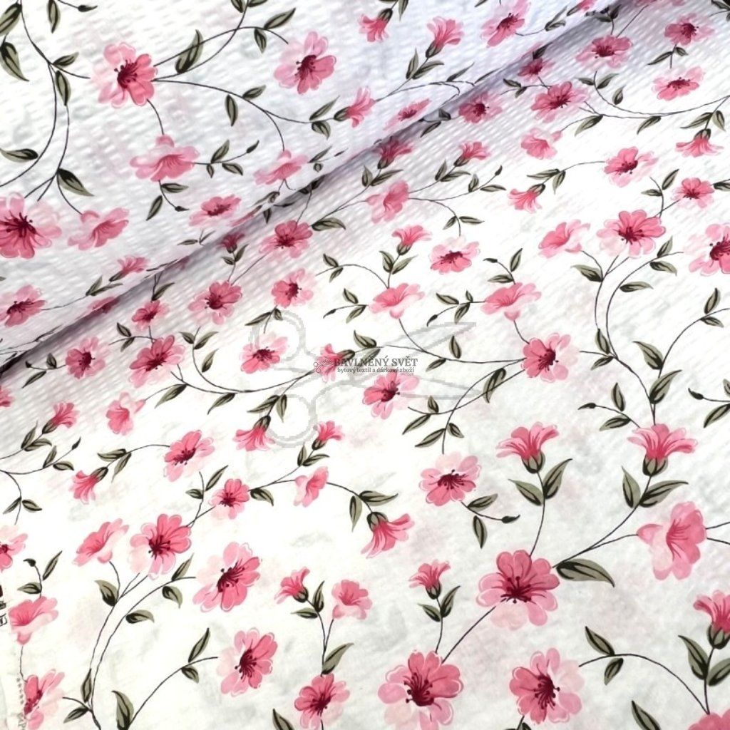 Bavlněný krep KVĚTINY Heda RŮŽOVÁ šíře 240 cm