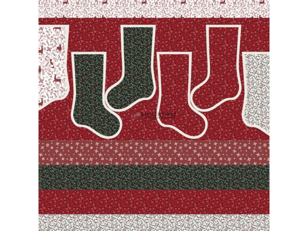 - Jednoduché šití: Panel obsahuje motivy pro 4 punčochy v tradičních vánočních barvách. Stačí vystřihnout a sešít.