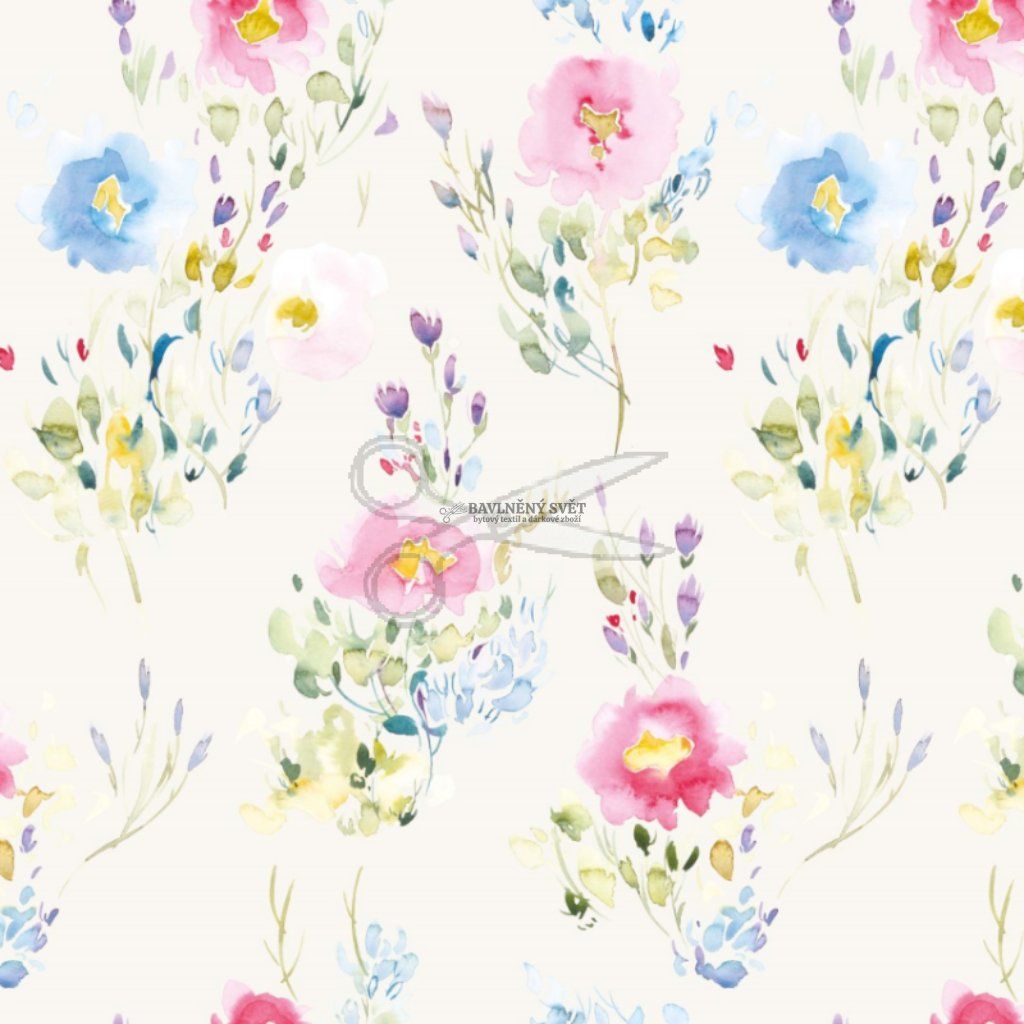 Bavlněný popelín KVĚTINY Táňa na BÉŽOVÉM šíře 150 cm