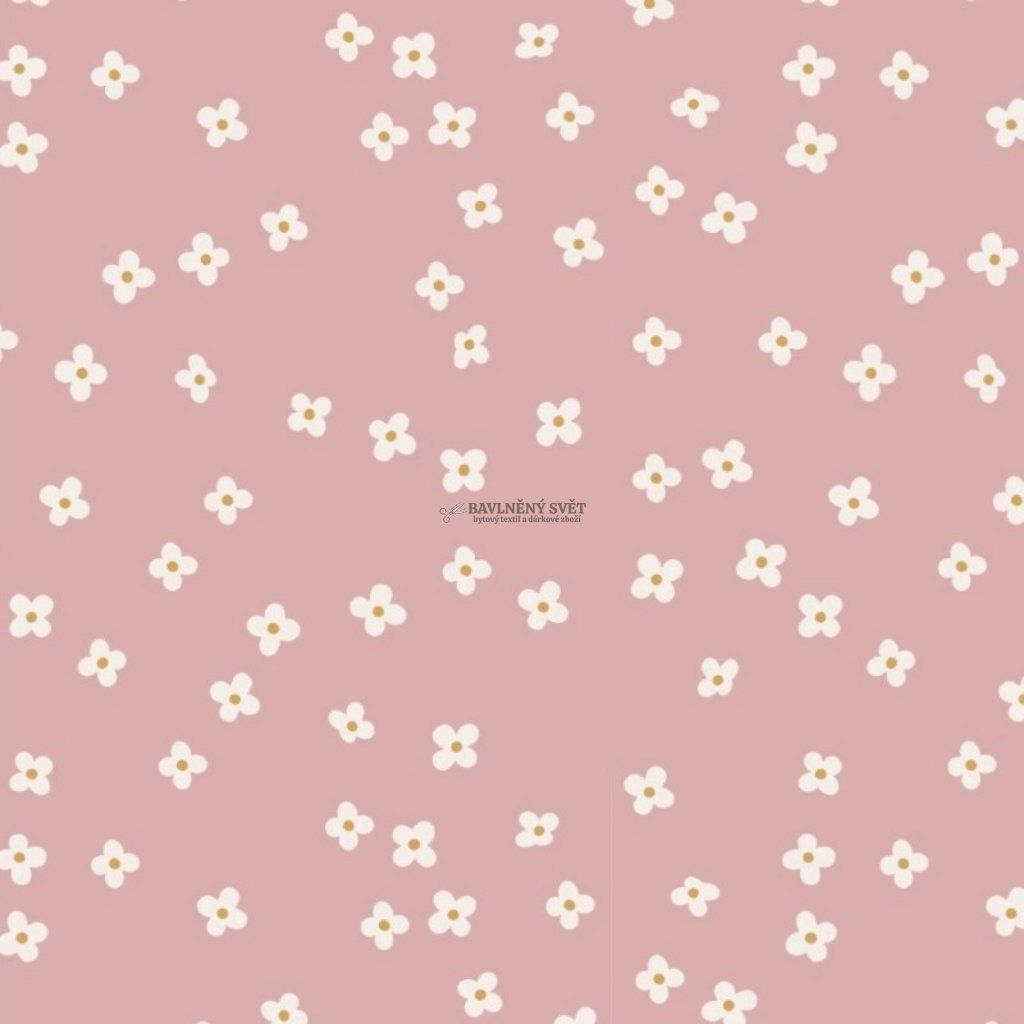 Bavlněný popelín KVÍTKA na RŮŽOVÉM šíře 150 cm