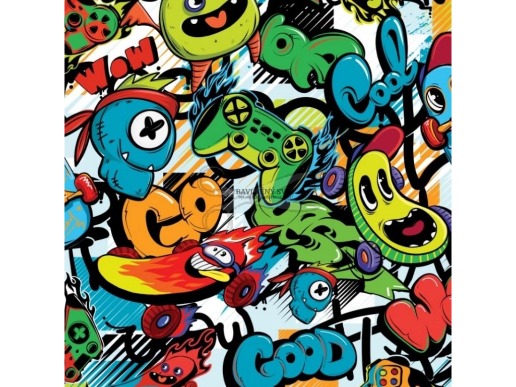 Hledáte látku, která má pořádný styl? Náš úplet GRAFFITI je navržen speciálně pro malé rošťáky, kteří milují barvy a akci. Na výrazném podkladu najdete vše od herních ovladačů a skateboardů až po vtipné příšerky a nápisy "COOL" nebo "WOW". Díky příměsi elastanu je materiál mimořádně pružný a tvarově stálý, takže se nevytahá ani při těch nejdivočejších hrách.