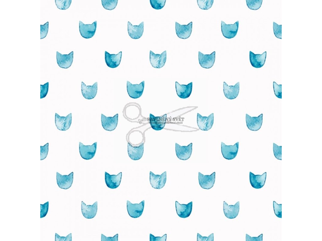 Bavlněný úplet KOČKY tyrkysové šíře 160 cm
