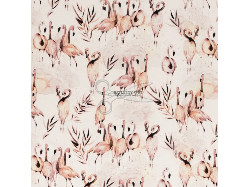 Tento bavlněný úplet s motivem plameňáků představuje perfektní materiál pro tvorbu moderního a pohodlného šatníku. Vzor v jemných nude a pastelových tónech působí velmi organicky a sofistikovaně, což z něj činí skvělý základ pro originální kousky, které vystoupí z davu. Díky vysokému podílu kvalitní bavlny je látka velmi jemná k pokožce, zatímco přidaný elastan zajišťuje, že se oblečení nevytahuje a vždy se perfektně přizpůsobí vaší postavě.
