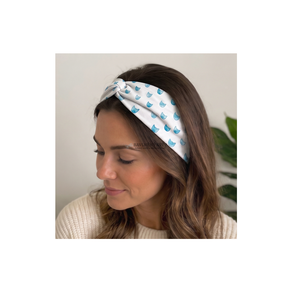 Dámská látková čelenka KOČKY tyrkysové (vysoká)