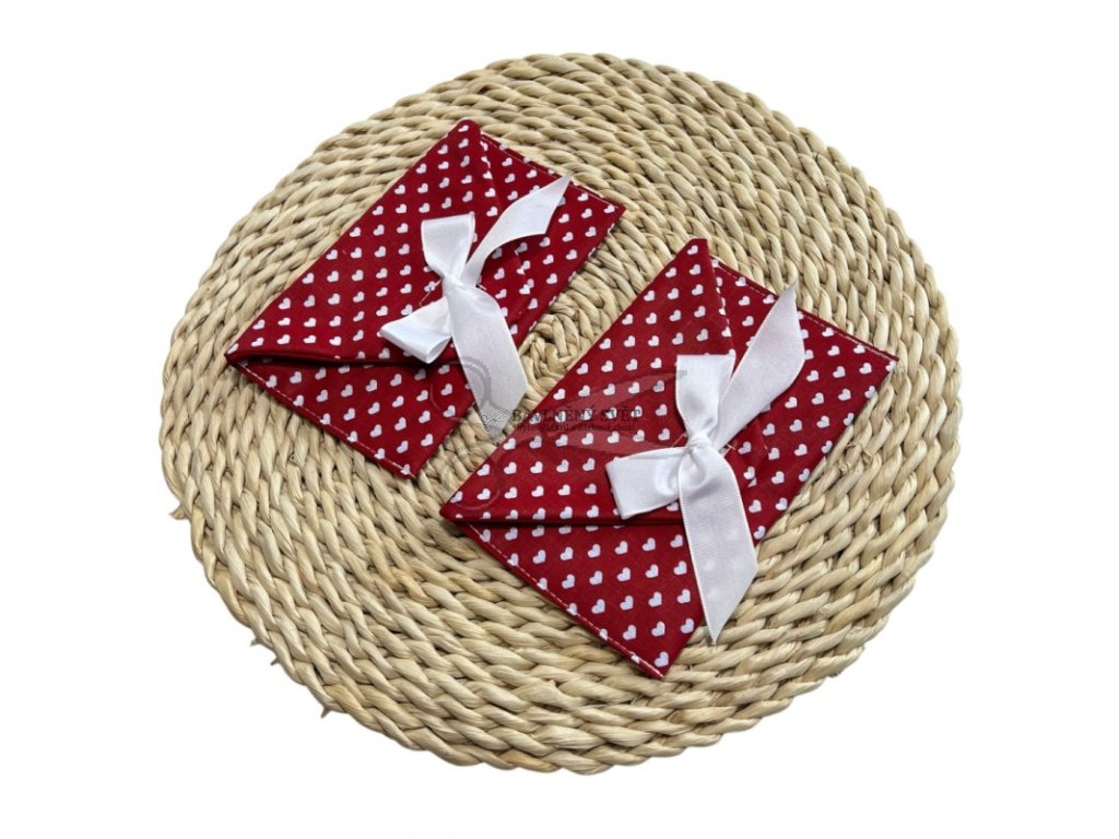 - Materiál: Kvalitní bavlna s motivem bílých srdíček na červeném podkladu.