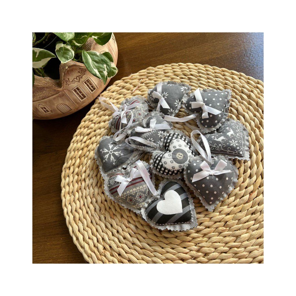 Dekorační látková srdíčka ŠEDÁ 10 ks