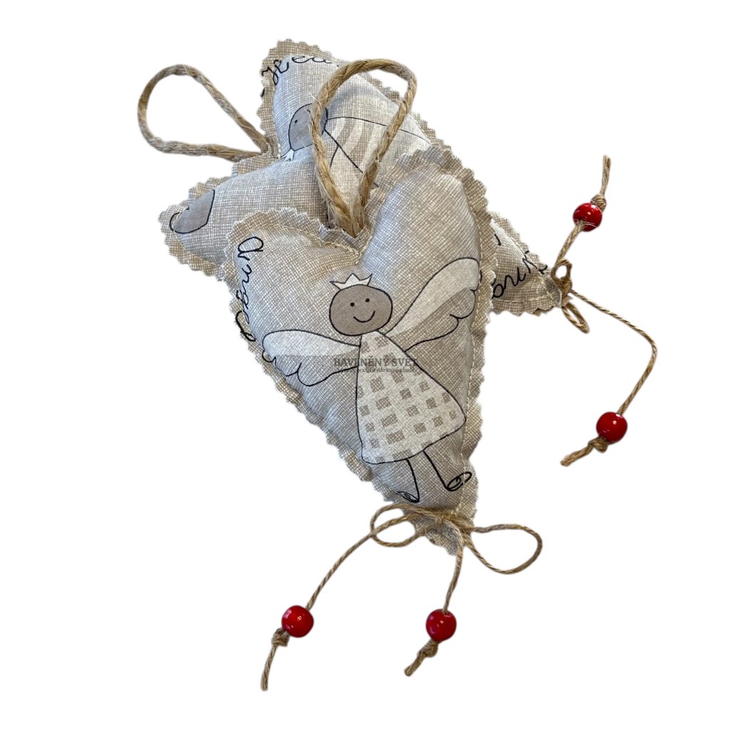 Dekorační látkové ANDĚLSKÉ SRDÍČKO béžové