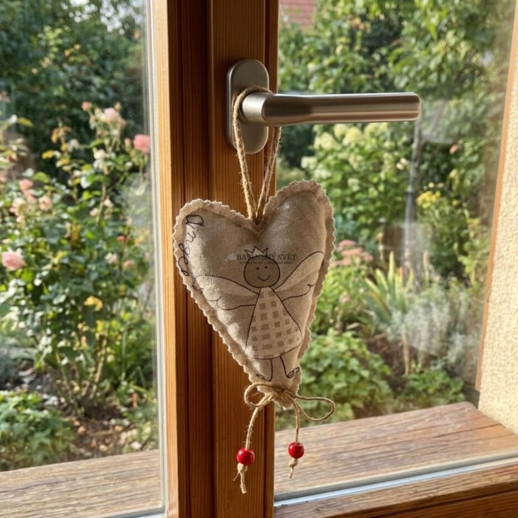 Andělé jsou symbolem bezpečí a klidu, a přesně takové je i naše látkové srdíčko. Pečlivě vybrané vzory s andělskou tematikou v kombinaci s poctivým řemeslem vytvářejí dekoraci, která pohladí po duši. Každé srdíčko navíc doplňujeme ozdobnými korálky, které podtrhují jeho něžný charakter.