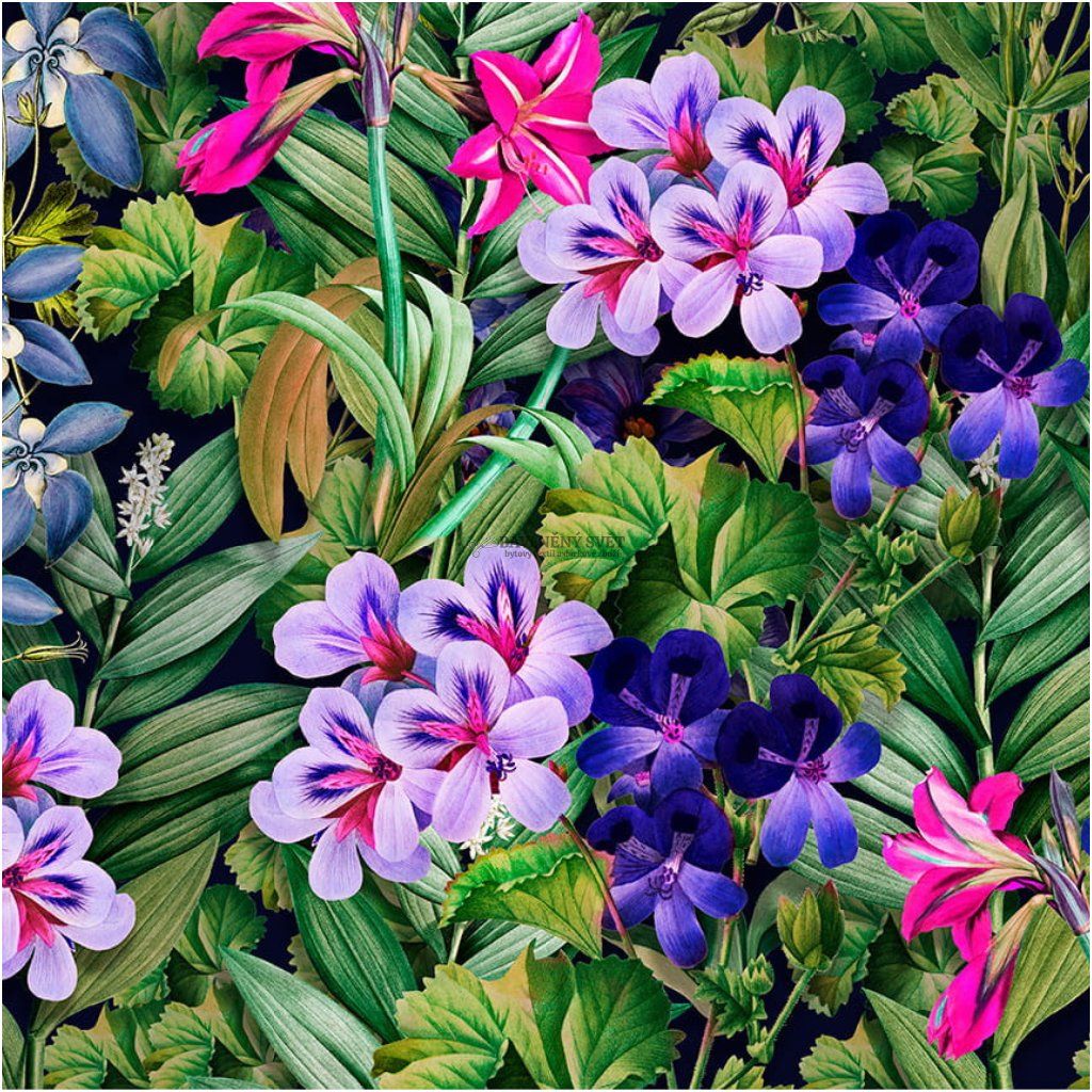 Dekorační potahová látka velur FIALKY šíře 142 cm