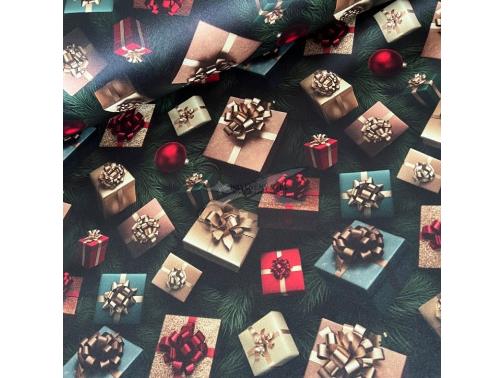 Proměňte svůj domov v elegantní vánoční sídlo s naším bavlněným dekoračním saténem. Tato látka je specifická svou vazbou, která vytváří hladký a mírně lesklý povrch, na němž motivy barevných dárků doslova ožívají. Tmavě zelený podklad je symbolem klasických Vánoc a v kombinaci se saténovým odleskem působí velmi sofistikovaně. Materiál je pevný, ale zároveň splývavý, což z něj dělá favorita pro náročnější dekoratérské projekty.