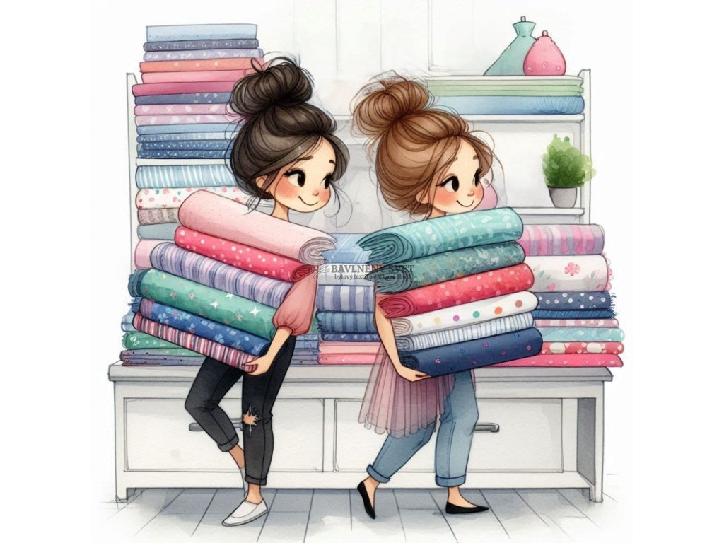 Poznáváte se? Ten pocit, kdy jdete pro jednu nit a odcházíte s náručí látek, je pro nás švadlenky naprosto typický. Náš velurový panel s motivem šťastných švadlenek oslavuje právě tyto momenty čisté radosti. Ilustrace v pastelových tónech na luxusním veluru působí velmi mile a útulně. Sublimační tisk zajišťuje, že barvy jsou jasné a motiv zůstává neuvěřitelně jemný na dotek, i když panel použijete na často namáhané doplňky.