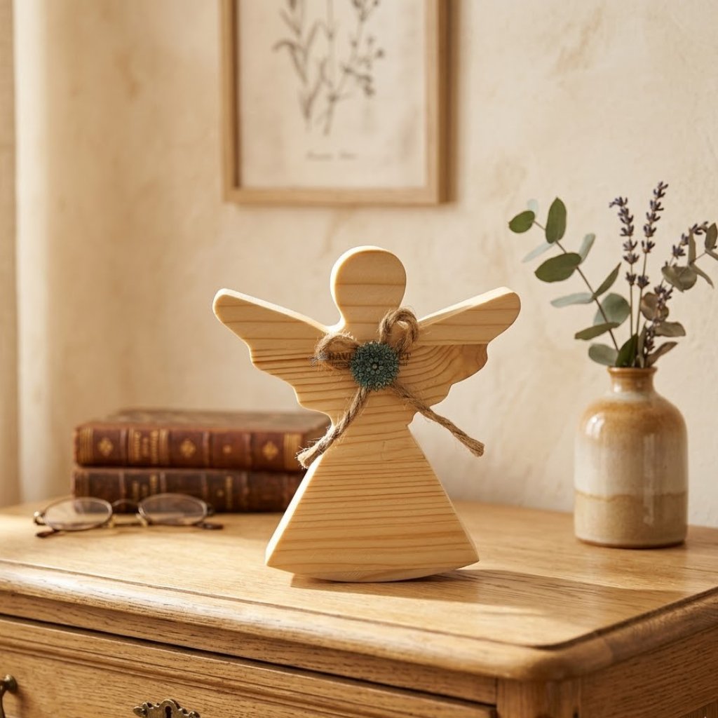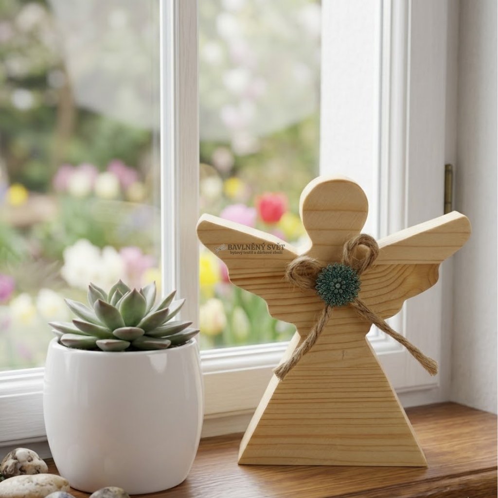 - Kvalitní masiv: Používáme dřevo s krásnou kresbou letokruhů, která dodává každému andělovi jedinečnou tvář.