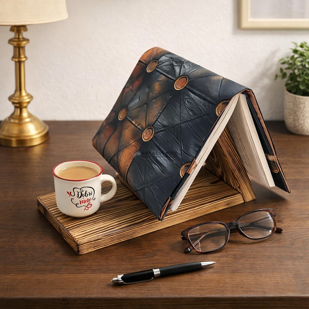 Představte si ten moment kdy se venku se stmívá, v domě vládne ticho a vy se konečně můžete začíst do své oblíbené knihy. Tento stojan v sobě spojuje tradiční řemeslo s moderní potřebou si odpočinout. Technika opalování dřeva dává vyniknout každému letokruhu, takže v ruce držíte neopakovatelný originál. Slouží jako stabilní odkládací plocha pro rozečtenou knihu a zároveň jako podnos pro váš oblíbený nápoj.